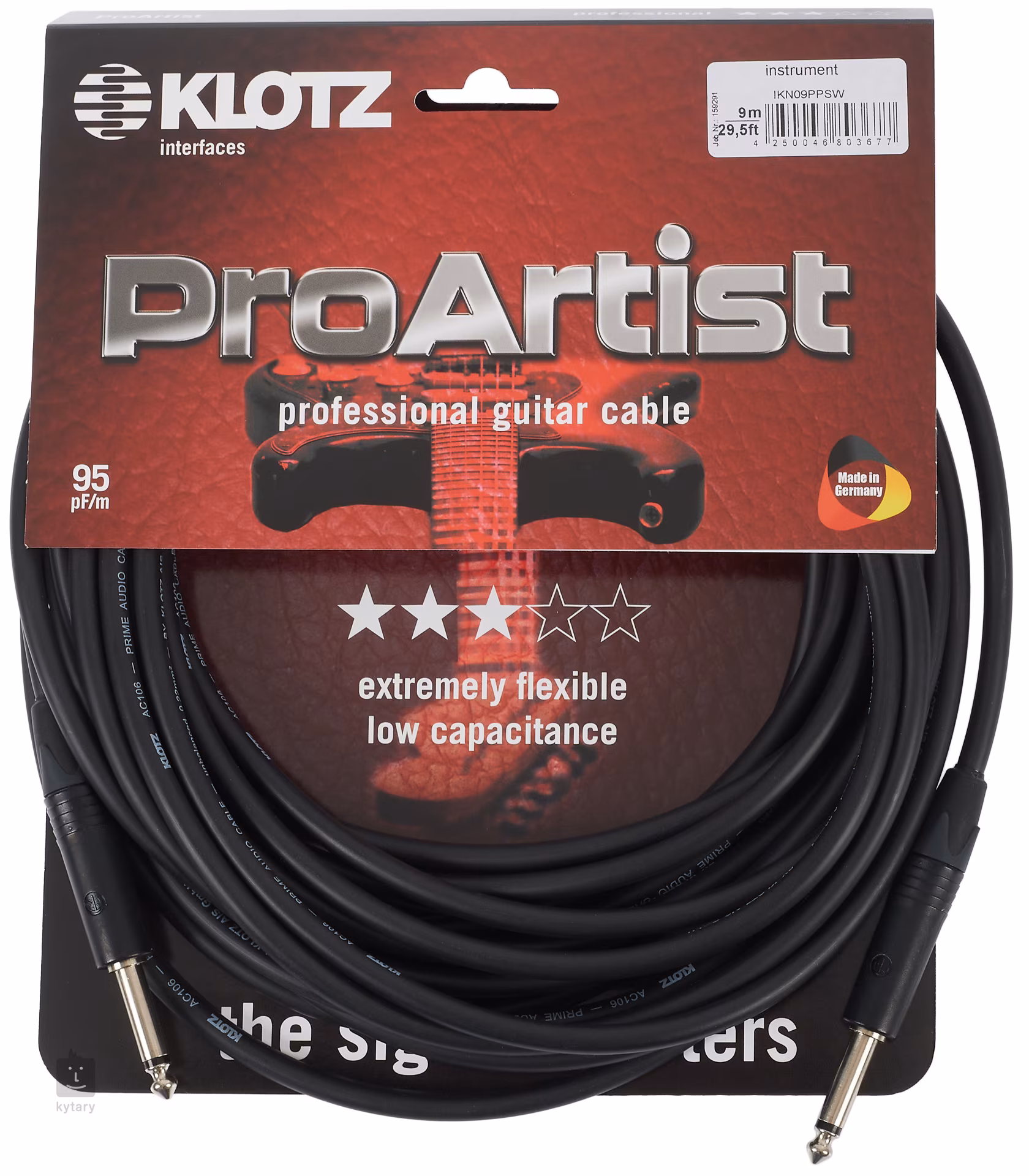 Die Klotz Instrumentenkabel der Pro Artist Serie bieten eine Kombination aus originalgetreuer Signalübertragung, hoher Flexibilität und Langlebigkeit. Der hochwertige Kupferkern sorgt für einen warmen, satten Klang mit minimaler Kompression, und die niedrige Kapazität von 95 pF/m gewährleistet eine schnelle Ansprache und einen frequenzmäßig ausgewogenen Klang. Verwenden Sie das Kabel, um eine Gitarre, einen Bass oder ein anderes Mono-Instrument anzuschließen. Dieses Modell hat zwei gerade Stecker. Seine Länge beträgt 9 Meter.