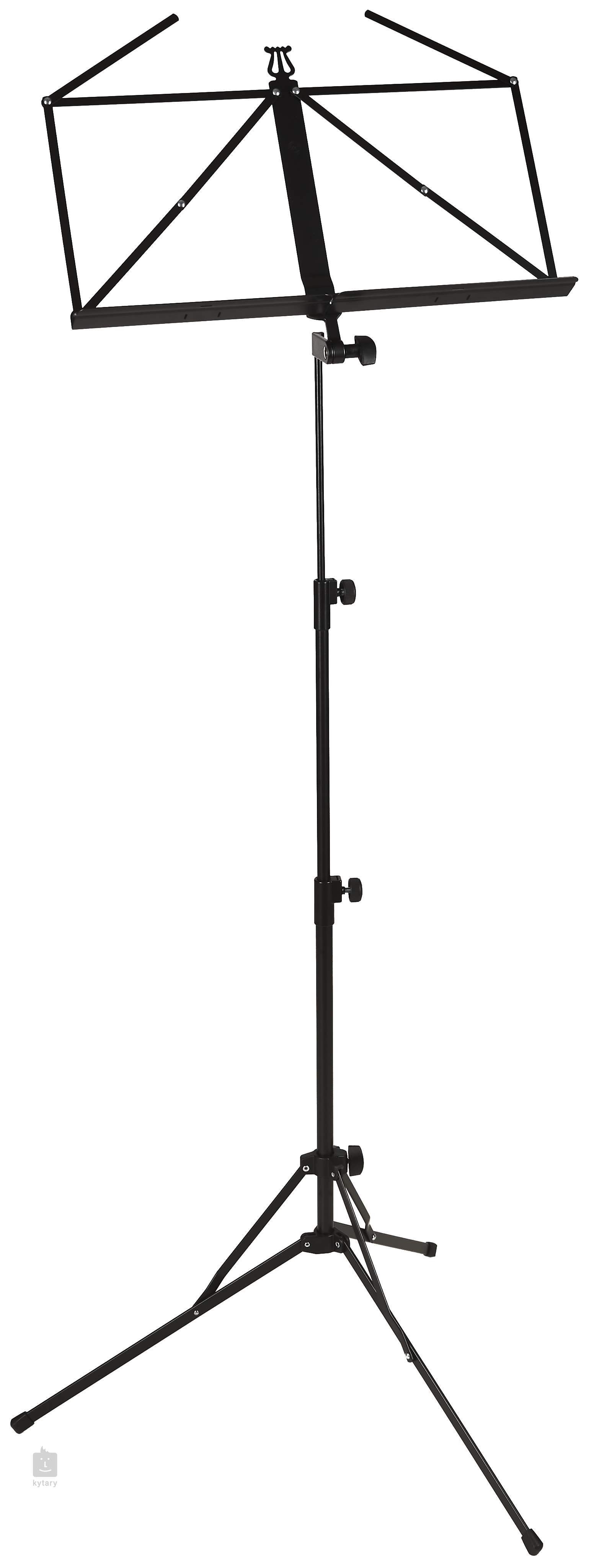 Leichtes Stahlstativ mit tiefem, klappbarem Notenpult, dreiteilige Klappkonstruktion mit Dreibeinfuß und verstellbarer Höhe von 500 bis 1300 mm. Zusammengeklappt nimmt es praktisch keinen Platz weg - die ideale Wahl für das Spielen und Üben zu Hause.