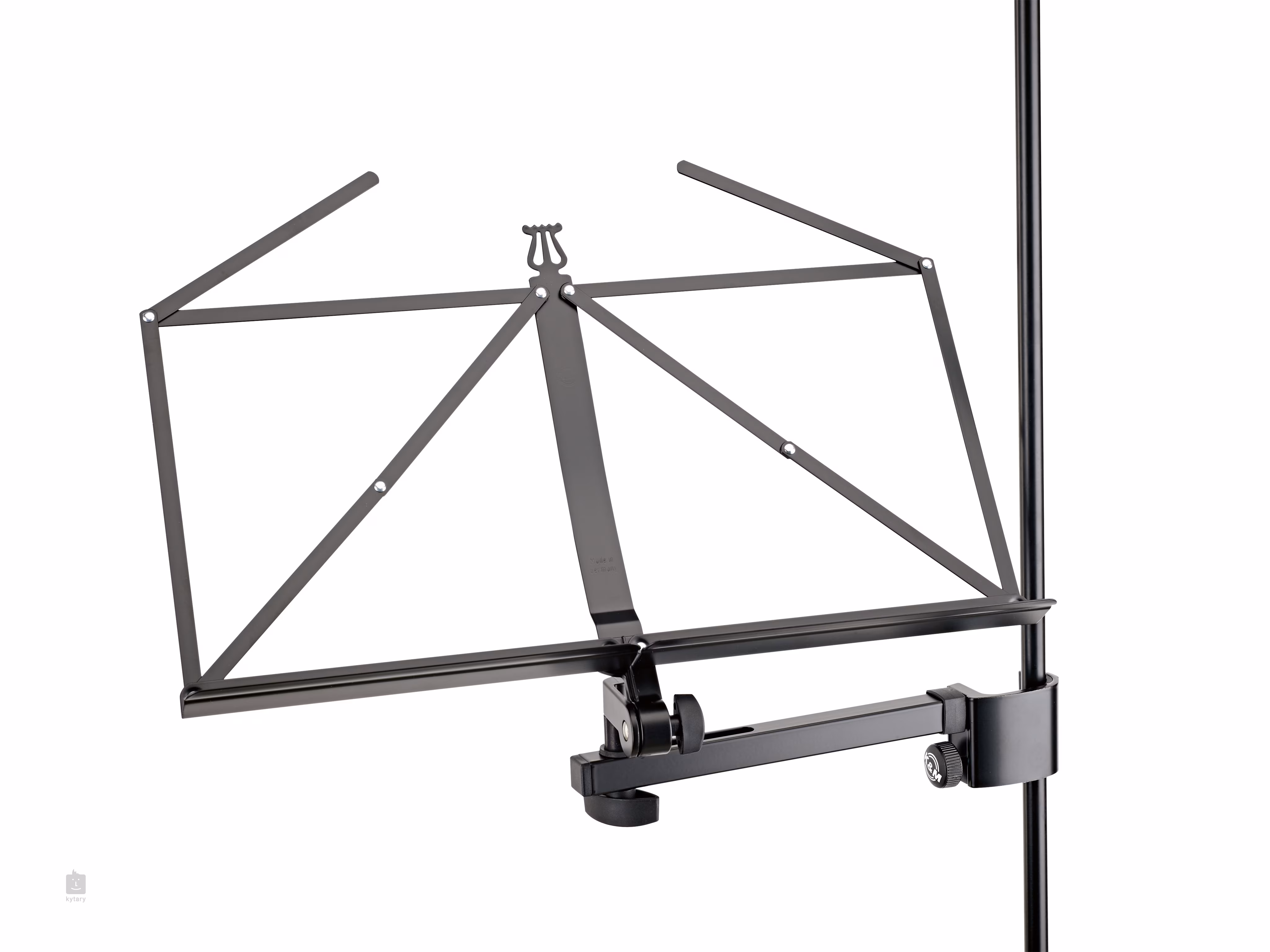 Zusammenklappbares Stahl-Notenpult mit Stahlarm, der leicht und einfach an Ständern mit Rohrdurchmesser 11 - 30 mm befestigt werden kann. Der Abstand der Theke zum Ständer kann von 185 bis 286 mm eingestellt werden. Abmessungen des Notenständers 485 x 240 x 42 mm.