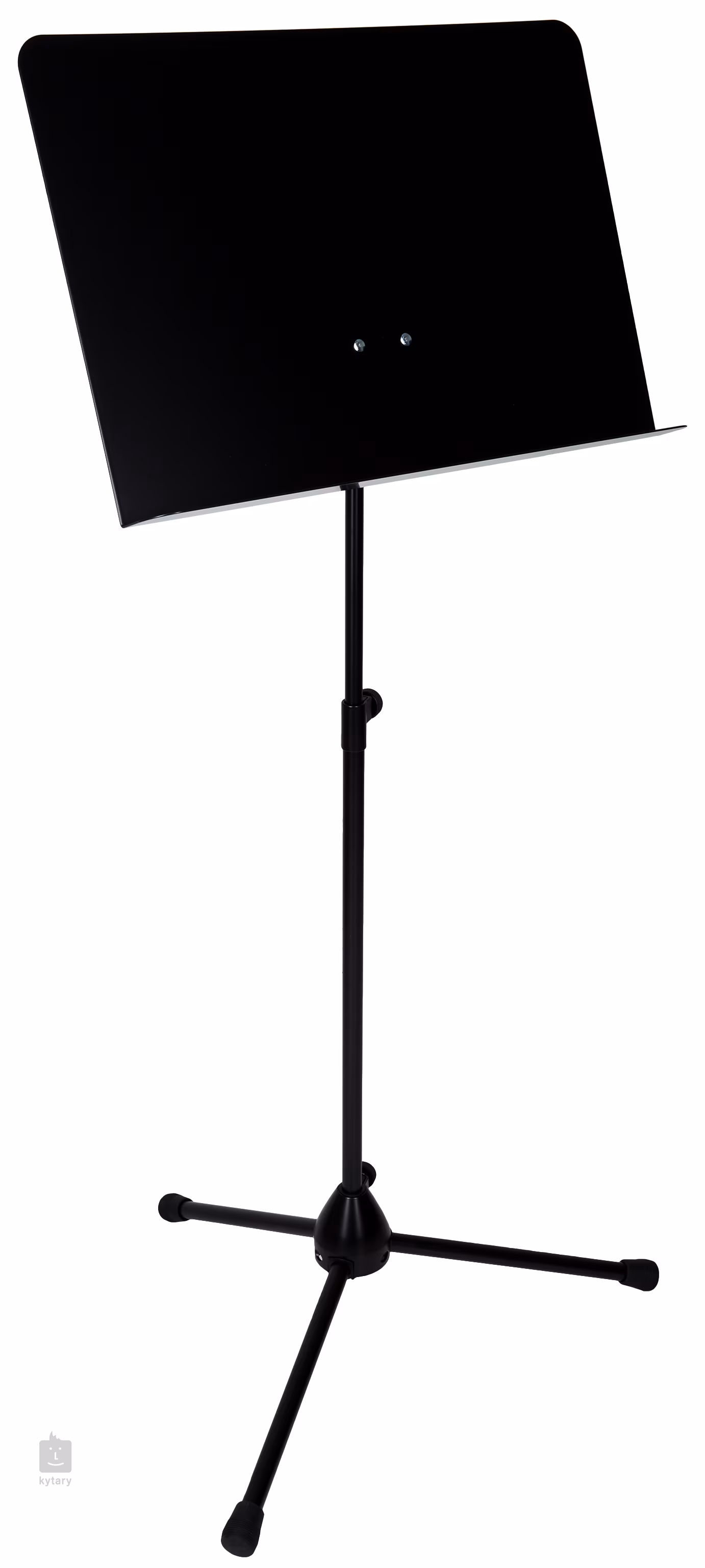 Das K&M Orchesternotenpult besteht aus einer stabilen, zweiteiligen, klappbaren Stahlkonstruktion mit Dreibeinfuß, verstellbarer Höhe bis zu 1210 mm und einem Aluminium-Notenpult mit den Maßen 520 x 355 mm.