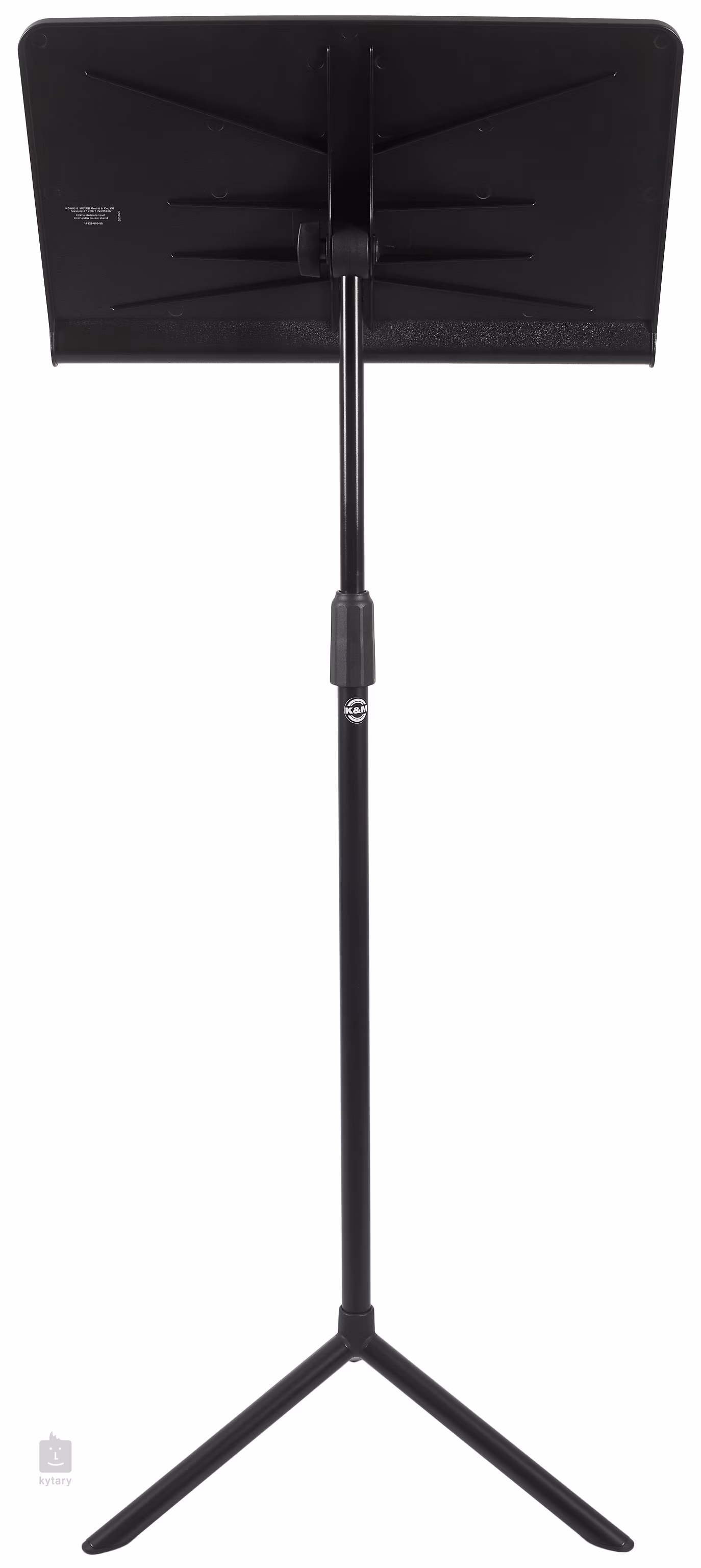 Das K&M 11925 Orchesternotenpult bietet eine nahezu unbegrenzte Anzahl von Höhenverstellungen von 750 mm bis 1280 mm (Friktionsverschluss). Neben der Höhe kann auch die Neigung des Notenpults eingestellt werden. Das Notenpult besteht aus einem leichten Kunststoffständer mit den Maßen 500 x 320 mm und einem Stahlständer mit festem Dreibeinfuß.