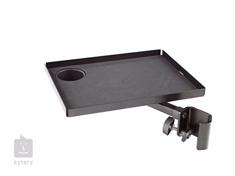 Eine Ablagetheke aus Stahl, die leicht und einfach an Stativen mit einem Rohrdurchmesser von 25 - 42 mm befestigt werden kann. Mit einer Fläche von 250 x 330 mm ist sie die ideale Ablage für Kompaktmischer, Regler und Tablets. Die Theke enthält auch einen praktischen Halter für Getränke (Tasse, Becher). Der Abstand zwischen der Theke und dem Ständer kann eingestellt werden.
