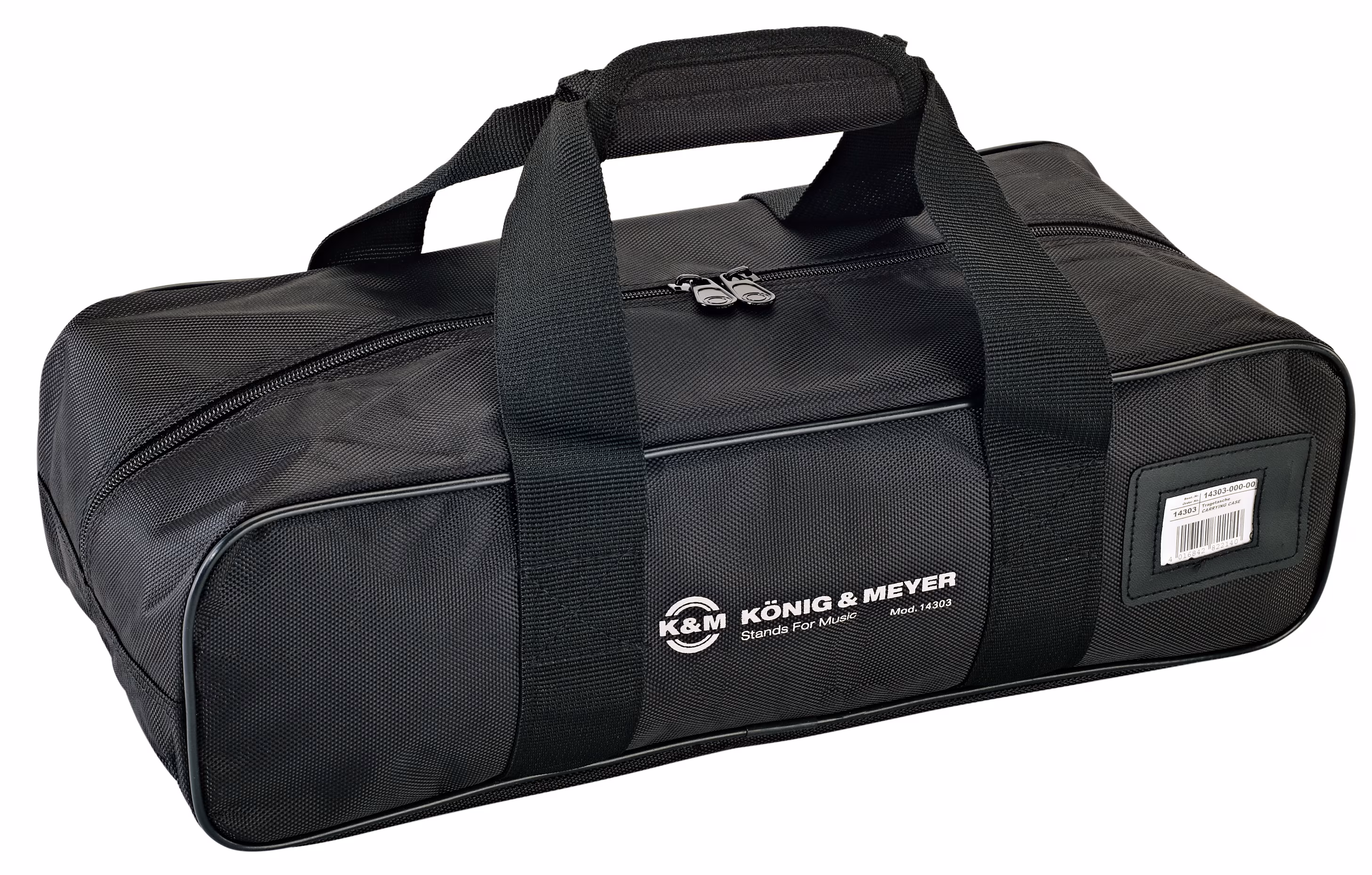 Die vielseitige Tragetasche aus strapazierfähigem, wasserdichtem Nylon mit einem Nylongriff und zwei separaten Innenfächern kann zwei Saxophonständer (14300) oder einen Saxophonständer (14300) und einen faltbaren Notenständer (101) aufnehmen.