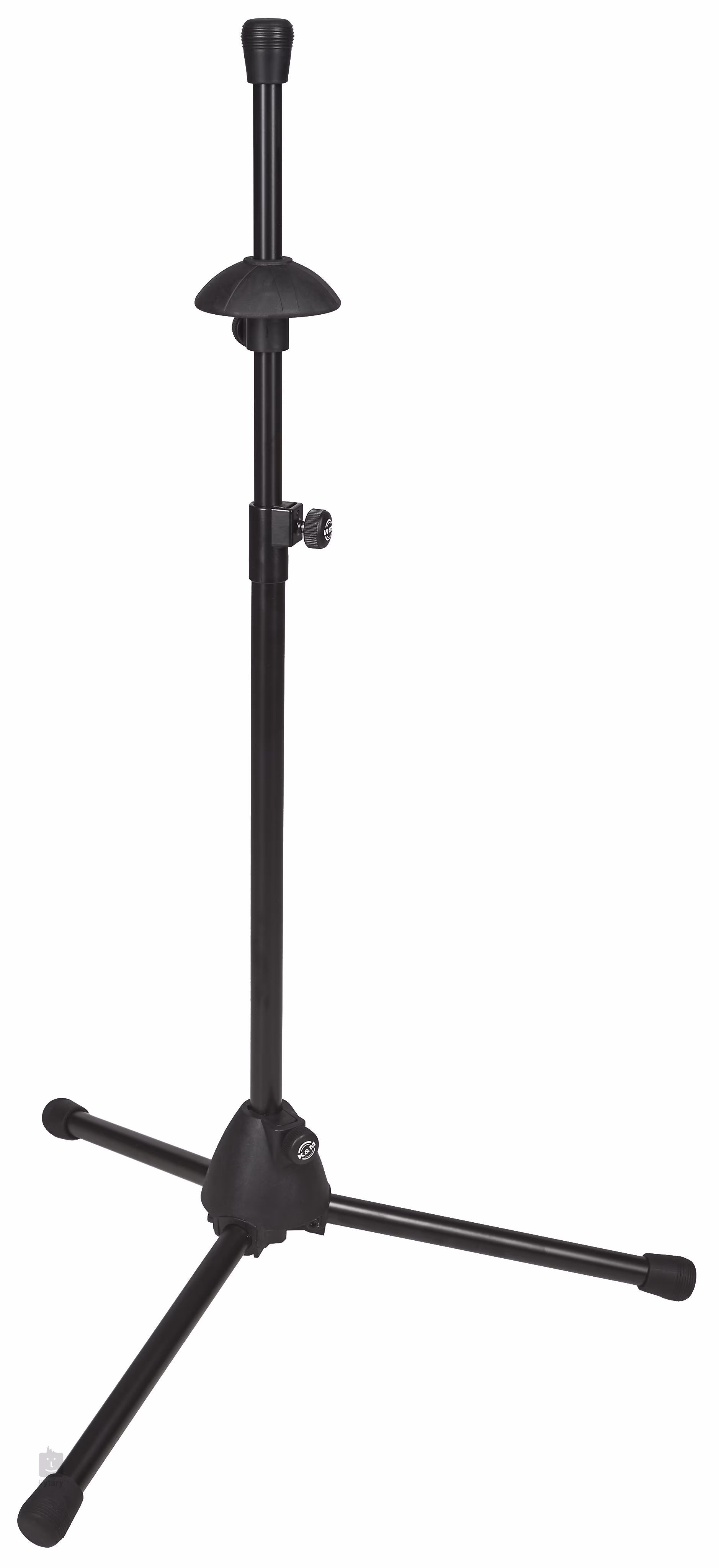 Posaunenständer aus Stahl mit Laminatfuß und Höhenverstellung (600 bis 970 mm). Die Teile, die mit dem Instrument in Berührung kommen, sind aus gummiertem Material, um Schäden an der Posaune zu vermeiden.