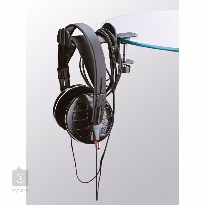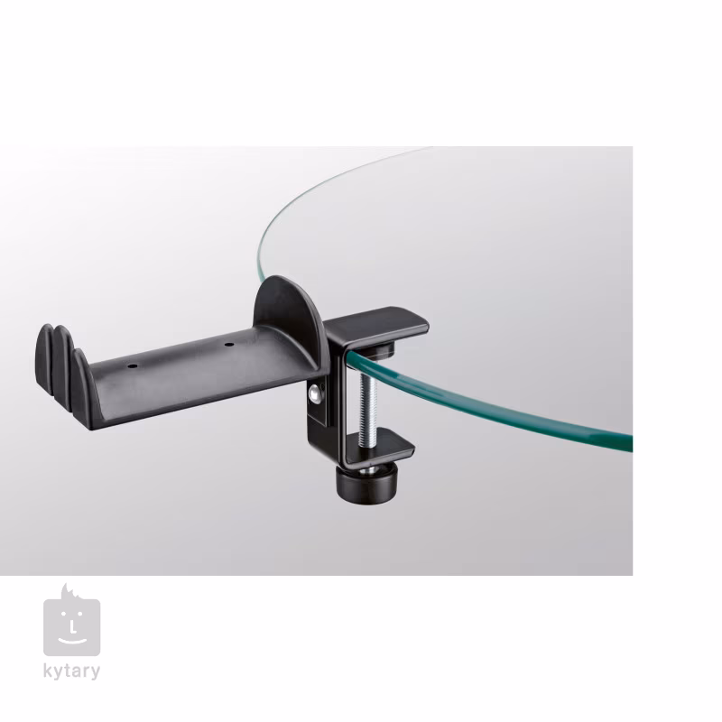 Der praktische Kopfhörerhalter ist aus massivem Stahl gefertigt und bietet maximalen Komfort für Ihre Kopfhörer, die zur Ausstattung eines jeden professionellen und heimischen Tonstudios gehören. Der Halter wird mit einer stabilen Schraube an einem bis zu 45 mm dicken Tisch befestigt, die 100 x 60 mm große Ablagefläche fasst bis zu zwei Studiokopfhörer, und die Vorderseite hat Aussparungen für ein Paar In-Ear-Kopfhörer. Der Halter kann auch als Mikrofon- und Instrumentenkabelhalter verwendet werden.