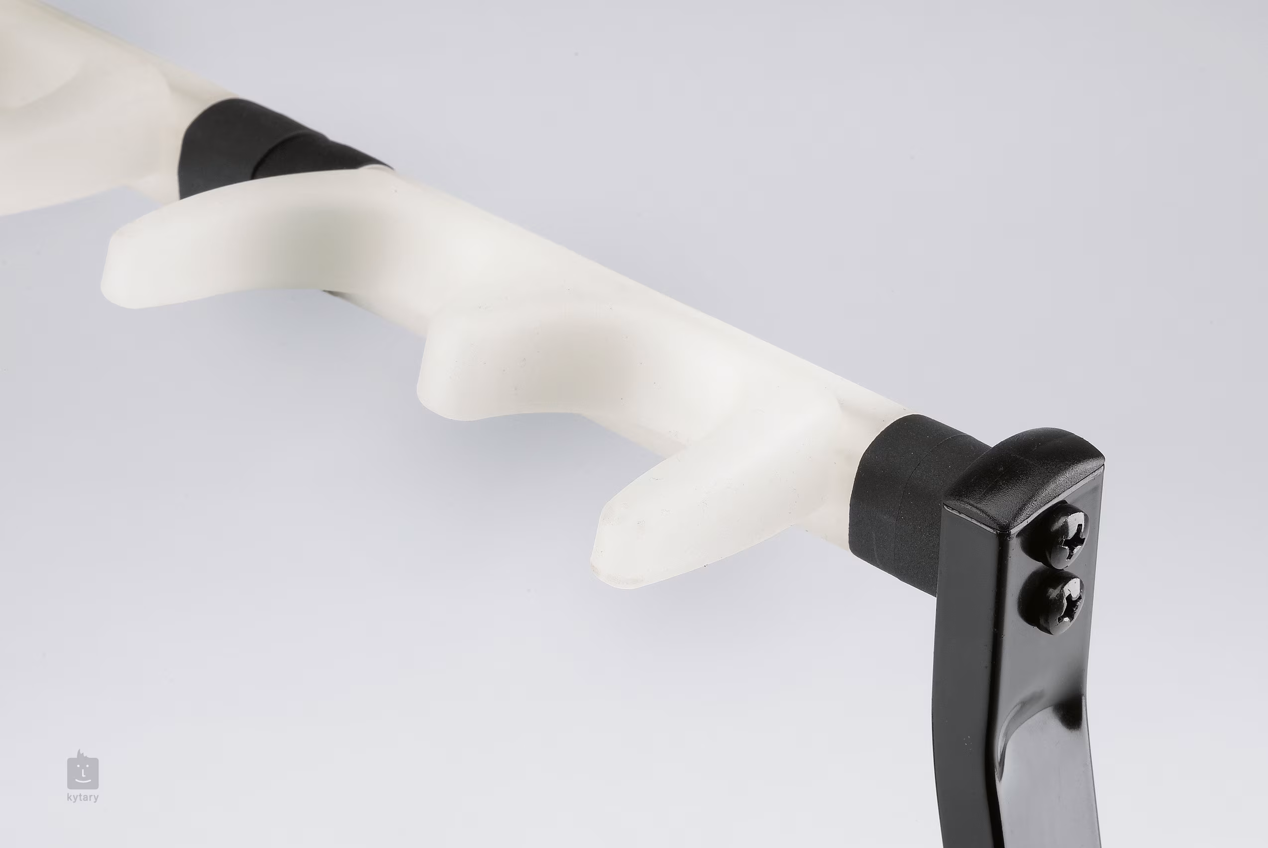 Ein kompakter und praktischer Ständer, der problemlos bis zu fünf elektrische oder akustische Gitarren oder Bässe aufnehmen kann. Die Trennwände verhindern, dass sich die Instrumente drehen und aus dem Ständer fallen, und schützen sie gleichzeitig vor unerwünschten Stößen bei der Handhabung. Alle Kontaktflächen sind mit einem weichen Elastomer überzogen, das die Instrumente vor Kratzern schützt und mit allen Arten von Lacken, einschließlich Nitrocellulose, sicher verwendet werden kann. Er hat außerdem den Vorteil, dass er sehr leicht ist und sich zum einfachen Transport zusammenklappen lässt.