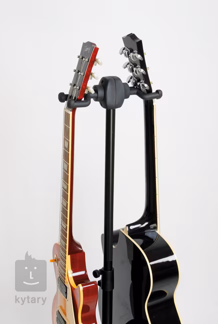 Doppeltes Fassungsvermögen bei gleichbleibender Größe, das ist der Double-Ständer der renommierten Firma König & Meyer. Dank der verstellbaren Höhe von 80 bis 130 Zentimetern lassen sich Akustik- und E-Gitarren, Bässe, Banjos und Ukulelen mühelos unterbringen, und das patentierte System sorgt für einen sicheren Halt. Weicher Schaumstoff und eine hochwertige Gummierung schützen den Lack an den Stellen, an denen er mit dem Instrument in Berührung kommt. Natürlich lässt sich der Ständer auch einfach zusammenklappen, die Transportmaße betragen dann nur 75 x 26 Zentimeter.