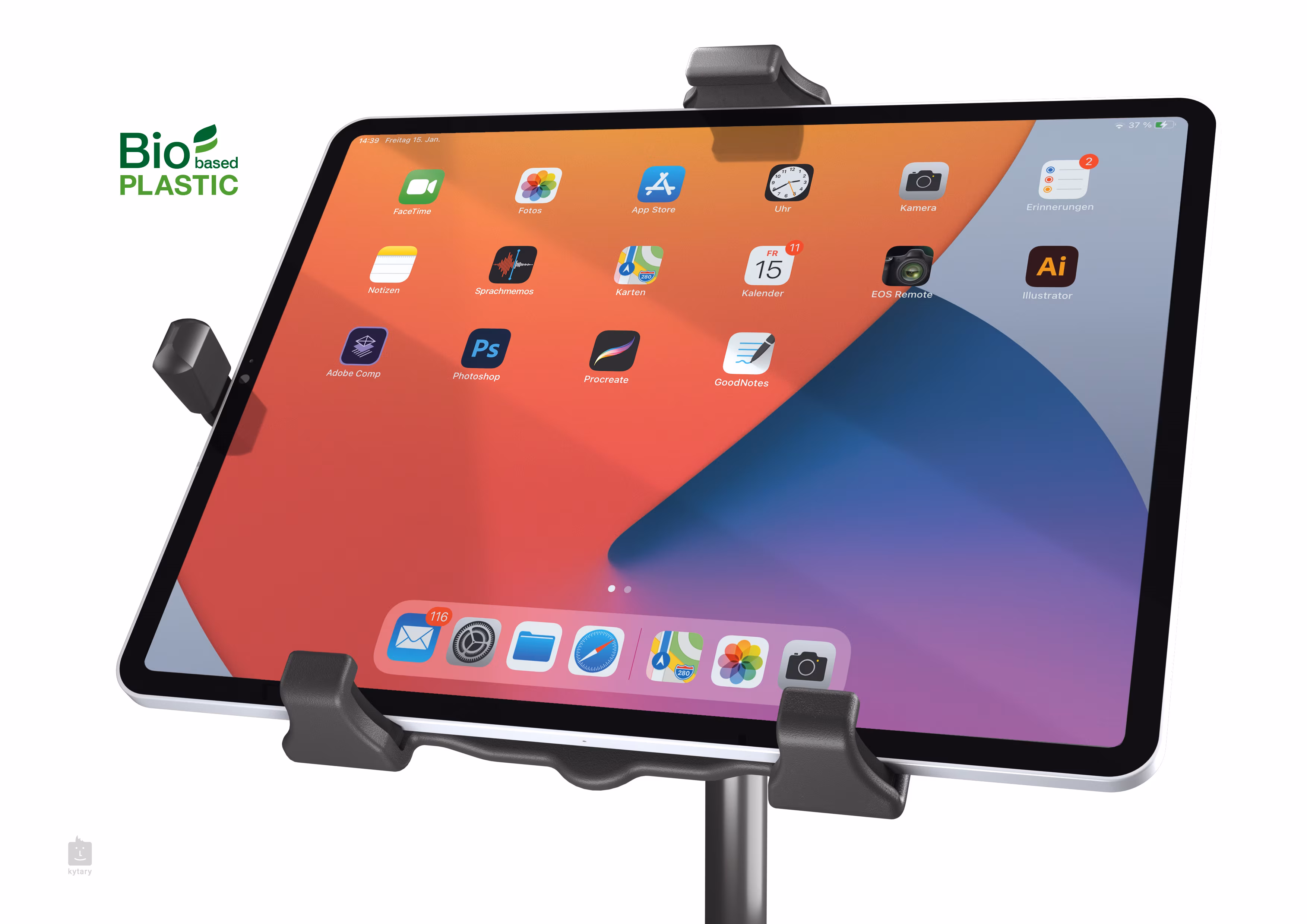 Universeller Tablet-Halter mit praktischem Schließsystem für maximale Sicherheit Ihres Geräts. Der aus einer Kombination von recyceltem Kunststoff und Stahl gefertigte Halter bietet außerdem hervorragende Anti-Vibrations-Eigenschaften, so dass Sie ihn nicht nur bei Studio-Sessions, sondern auch bei lauten Live-Auftritten verwenden können. Der Halter ist für Tablets von 10 - 16 Zoll geeignet und kann an einem Mikrofonständer mit einem 3/8" oder 5/8" Gewinde befestigt werden. Außerdem ist der Halter in der Höhe von 158 bis 280 mm und in der Breite von 150 bis 330 mm verstellbar.