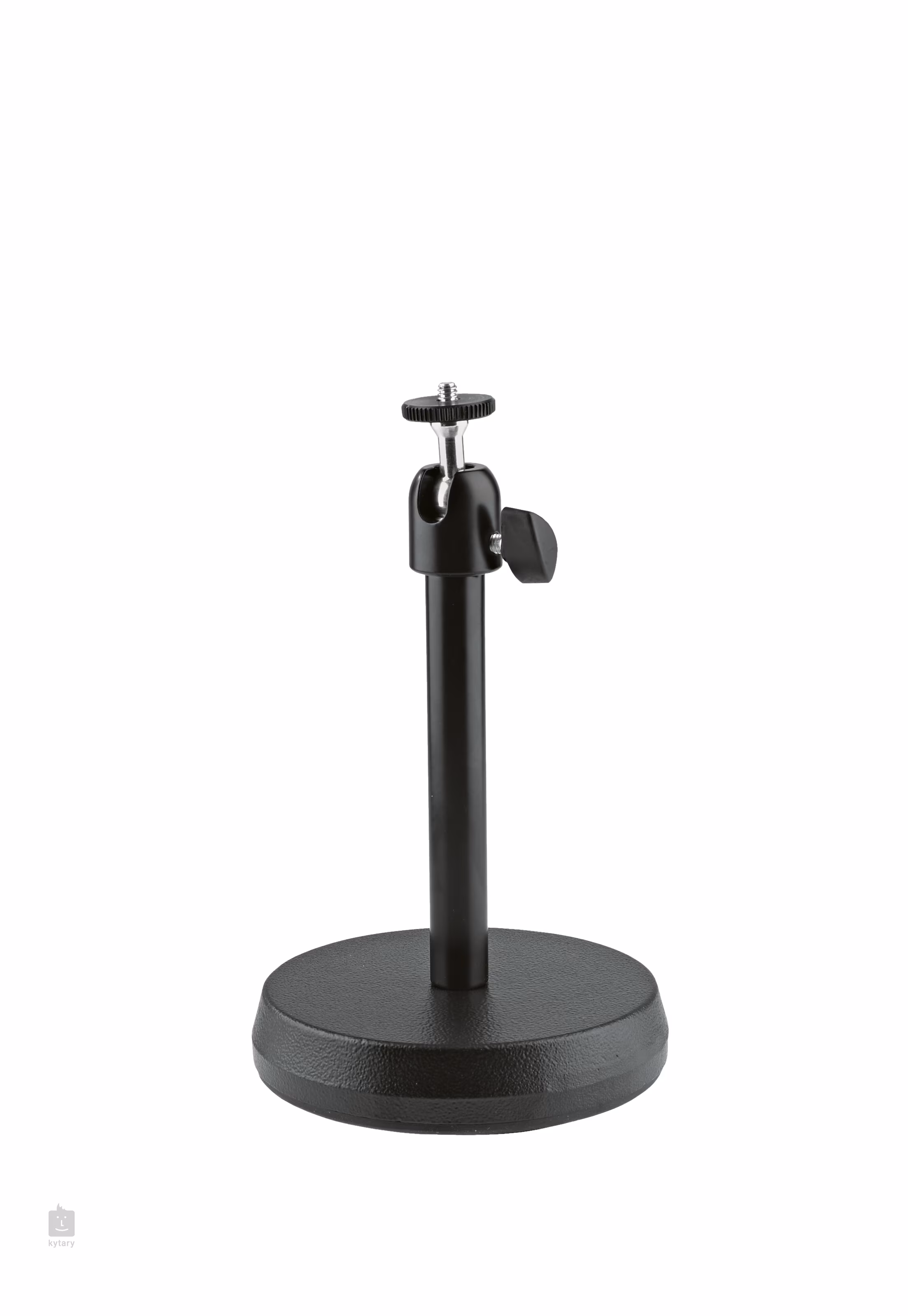 Universeller Tischständer für Kamera, Rekorder, Smartphone-Halter und andere AV-Geräte. Der Ständer verfügt über einen stabilen runden Sockel und ein ?"-Gewinde zum Befestigen Ihrer Ausrüstung oder anderer Anbauteile. Das Gewinde ist an einem Drehgelenk befestigt, mit dem Sie die Neigung von 0 bis 90 Grad verändern können.