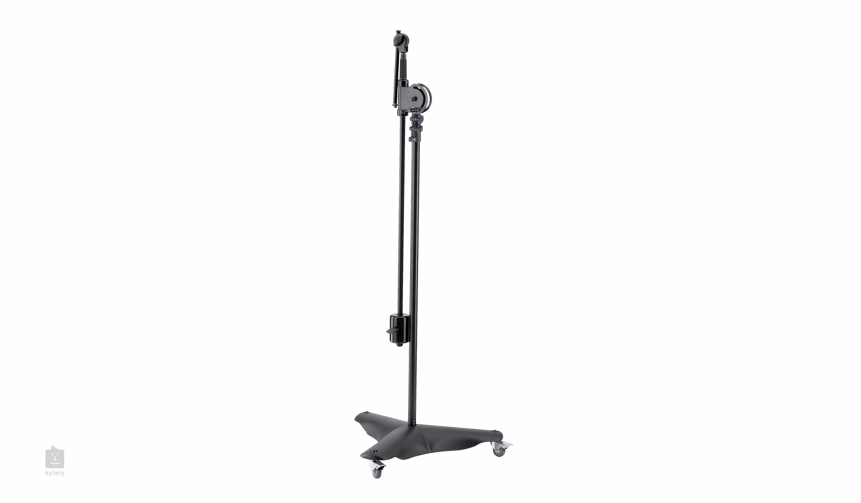 Das Spezialstativ für den Studio- oder Bühneneinsatz verfügt über einen extra schweren Sockel mit einem Gewicht von 10 Kilogramm, der dank seines niedrigen Schwerpunkts 100%ige Stabilität bietet. Der Doppelstab ist über zwei Meter hoch und wird durch eine zusätzliche Sicherung und ein drei Kilogramm schweres Gegengewicht sicher gehalten. Das Stativ ist außerdem mit einem Teleskoparm (1070/1870 mm) ausgestattet. Der Anschluss bietet ein Paar 3/8"- und 5/8"-Gewinde, so dass jedes Mikrofon angeschlossen werden kann. Drei feststellbare Rollen sorgen dafür, dass sich dieser robuste Ständer leicht bewegen lässt.