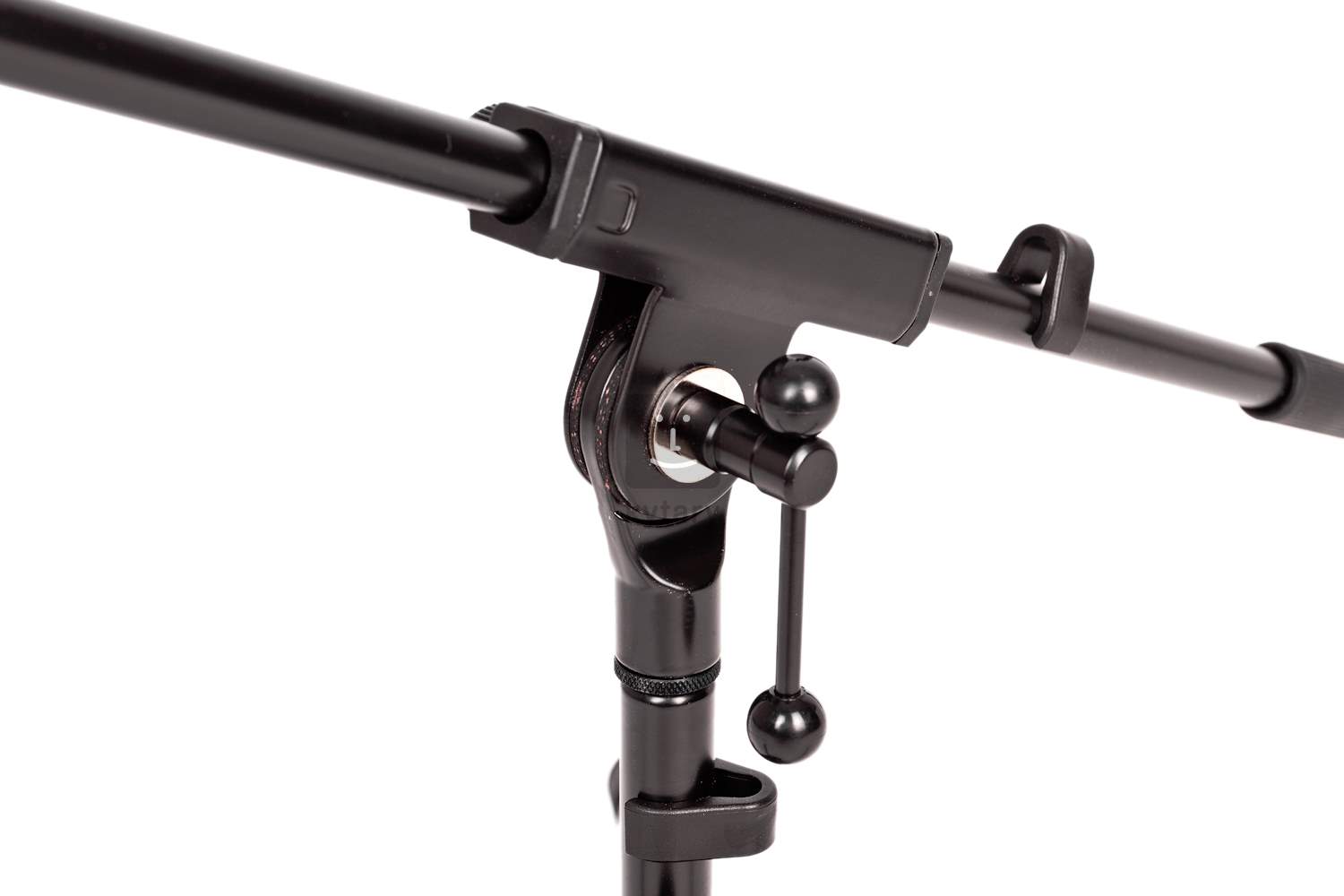 Niedriges Stativ mit Arm, speziell für Bass Drums usw. entwickelt. Gewicht 1,8 kg, Höhe 275 mm, Arm 525 mm, Farbe schwarz.