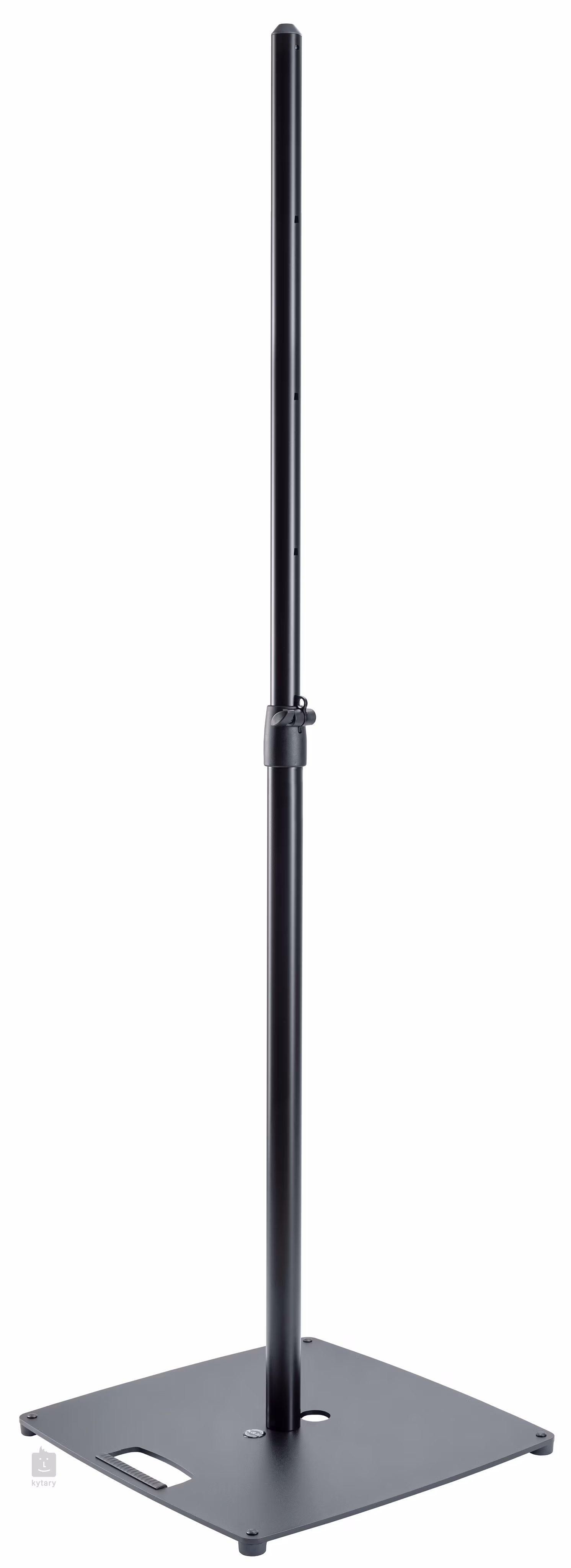 Mit seinem flachen, aber stabilen, quadratischen Stahlfuß ist das Stativ ideal für den Einsatz bei beengten Platzverhältnissen oder dort, wo ein herkömmliches Stativ keinen guten ästhetischen Eindruck machen würde. Der Sockel verfügt über einen Tragegriff, ein Kabelmanagementsystem und vier stabile Füße.