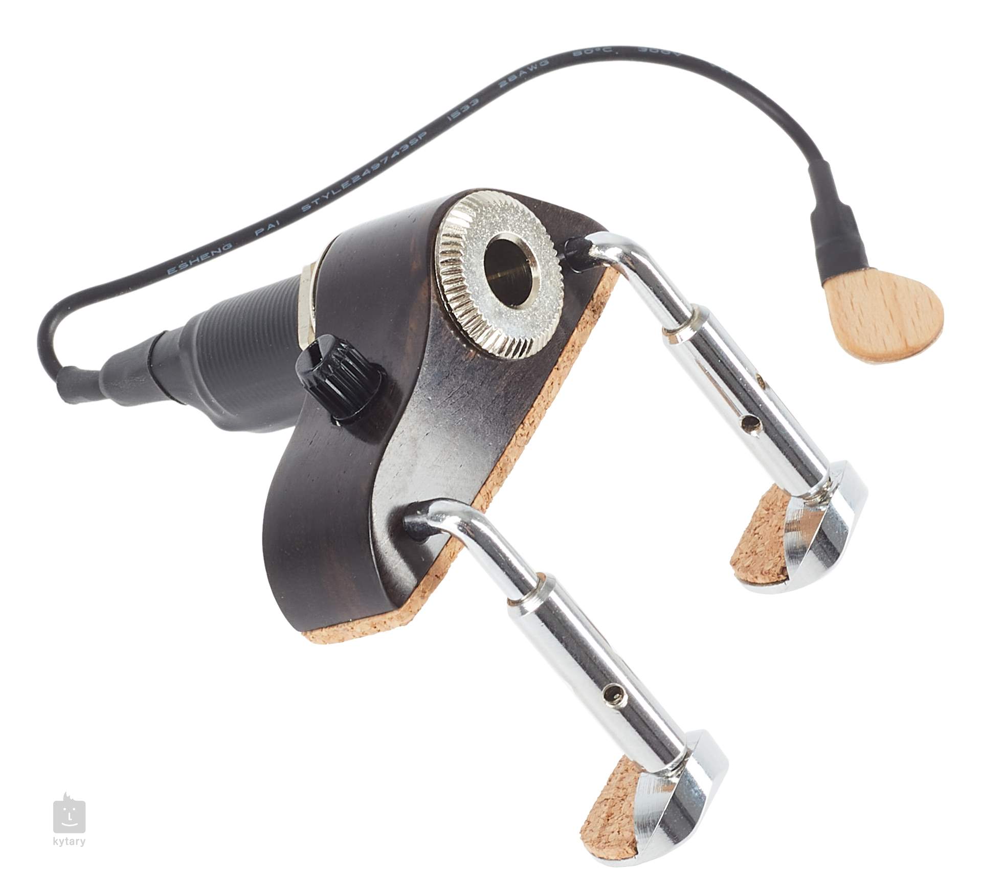 VV-3V ist ein passiver Piezo-Tonabnehmer für Violine und Viola. Es wurde entwickelt, um einen sehr natürlichen Klang zu erzeugen und die spezifischen akustischen Eigenschaften des Instruments zu erhalten. Die Ausgangsbuchse dieses Modells ist in eine flache Ebenholzkonstruktion eingebettet. Darüber hinaus verfügt er über ein Potentiometer zur Lautstärkeregelung. Der Piezosensor selbst ist in einem leichten Holzgehäuse untergebracht, um eine maximale Empfindlichkeit zu gewährleisten. Das gesamte System arbeitet im passiven Modus, d. h. es benötigt weder eine Batterie noch eine andere Stromversorgung, um zu funktionieren.
