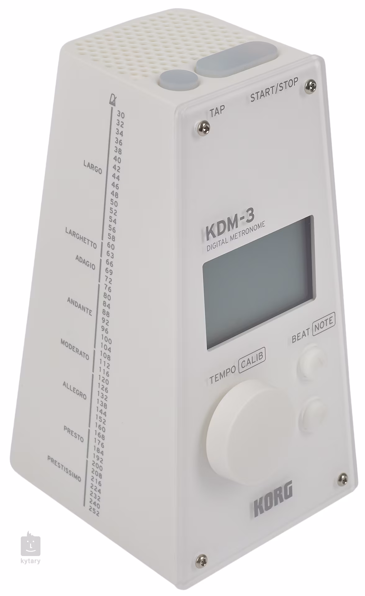 Auf den ersten Blick fällt das Korg KDM-3 zweifellos durch sein stilvolles Design auf, das an ein klassisches mechanisches Metronom erinnert, aber gleich danach werden Sie von der Anzahl der Funktionen überrascht sein, die ein Standard-Metronom nicht bieten kann. Sie können zwischen acht verschiedenen Klängen und neunzehn rhythmischen Mustern wählen, das Tempo kann zwischen 30 und 252 bpm eingestellt werden, und natürlich ist auch die bekannte Sound Out-Funktion verfügbar.