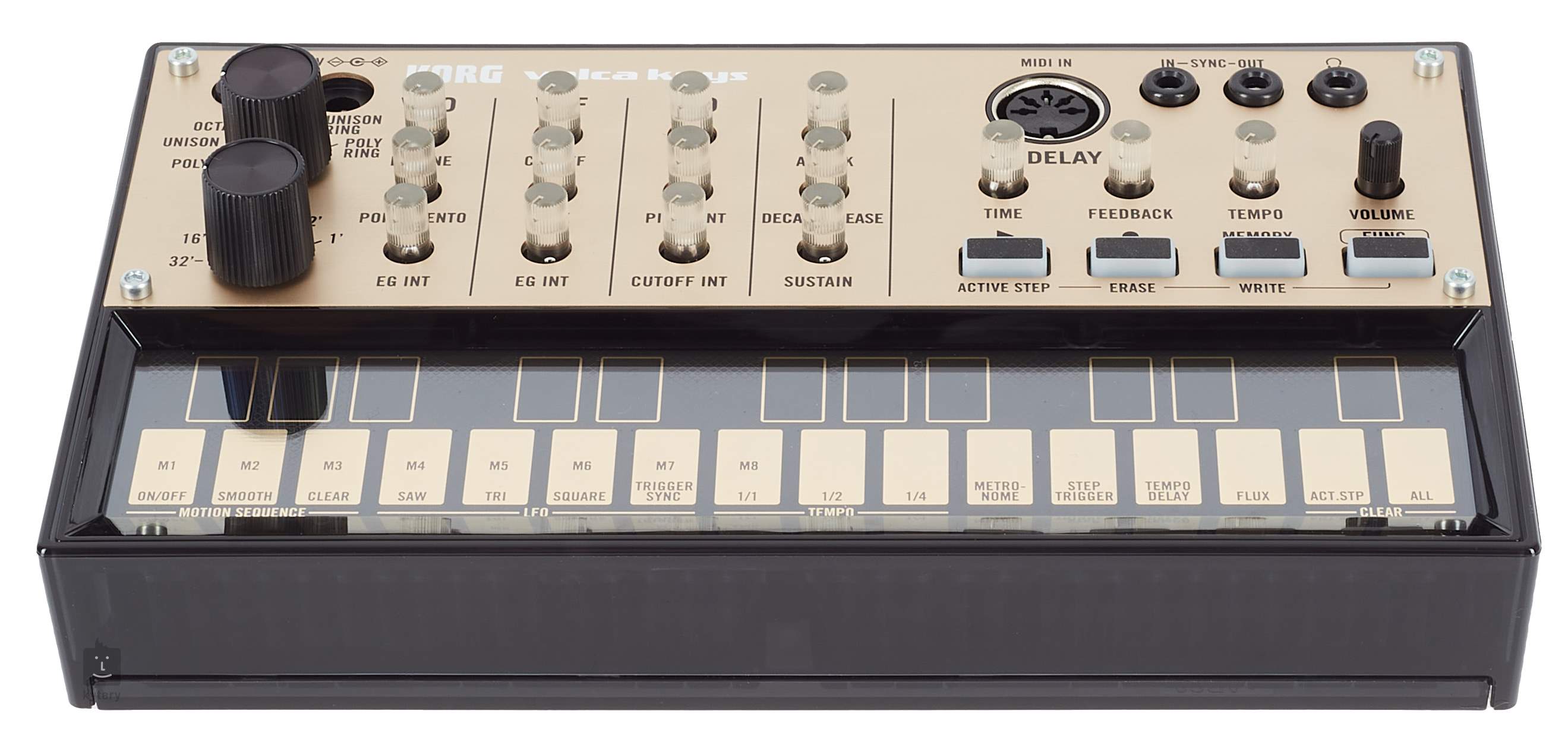 SYNC-Buchse und MIDI IN-Anschluss - zum Anschluss an andere Instrumente oder Musiksoftware Dank der umfangreichen Anschlussmöglichkeiten können Sie die Wiedergabe von mehreren volca-Synthesizern gleichzeitig genießen oder sie zu einem Monotribe verbinden. Dank der "SyncKontrol"-App auf Ihrem iPhone können Sie auch das Tempo und einige andere Einstellungen drahtlos steuern, zum Beispiel die Wiedergabe mit iOS über WIST.