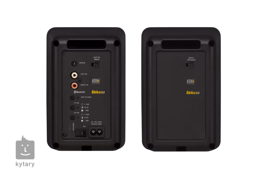 Die KRK GoAux 3 sind aktive Dual-Band-Studiomonitore mit einem 3-Zoll-Tieftöner (22 W) und einem 3-Zoll-Hochtöner (8 W), integriertem Bluetooth 5.0-Empfänger, Lautstärkeregler und Kopfhörerausgang an der Vorderseite sowie RCA L/R- und 3,5-mm-Klinken-TRS-Line-Eingängen. Im Lieferumfang enthalten sind ein robuster Kunststoffkoffer, Zubehör und Monitorständer mit einstellbarer Monitorposition und Neigung.