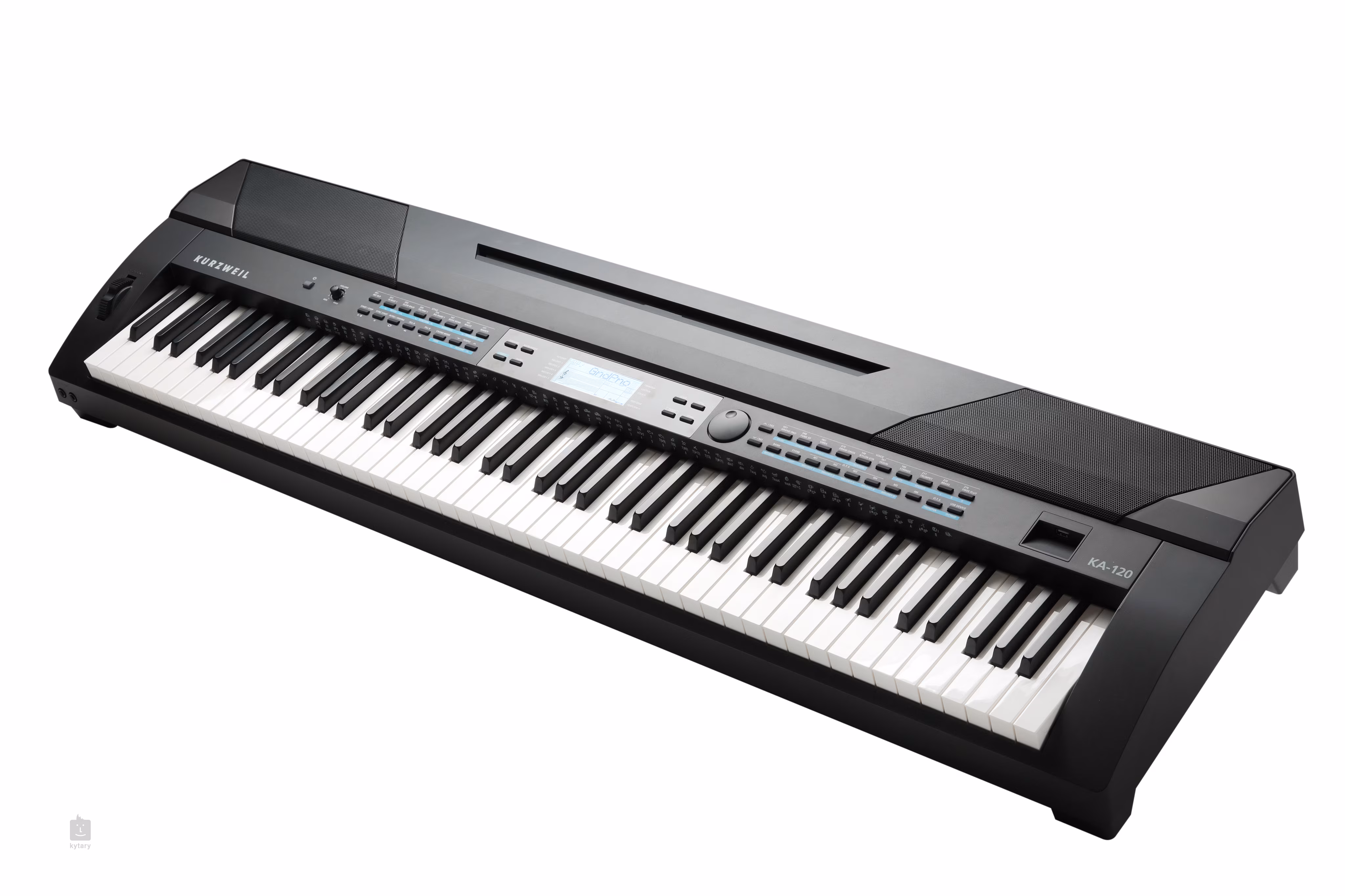 Das KA120 von Kurzweil ist ein tragbares Digitalpiano, das mit einer voll ausbalancierten Hammermechanik mit einstellbarer Anschlagsdynamik ausgestattet ist. Es hat achtundachtzig Tasten, den Standard-Klavierbereich. Es bietet 600 hochwertige Corporate Presets mit dem Charakter von Tasteninstrumenten (Klaviere, Orgeln, Synthesizer), Streichern (Gitarren, Bässe, Streicher), Bläsern (Holzbläser, Blechbläser) und Perkussionsinstrumenten.