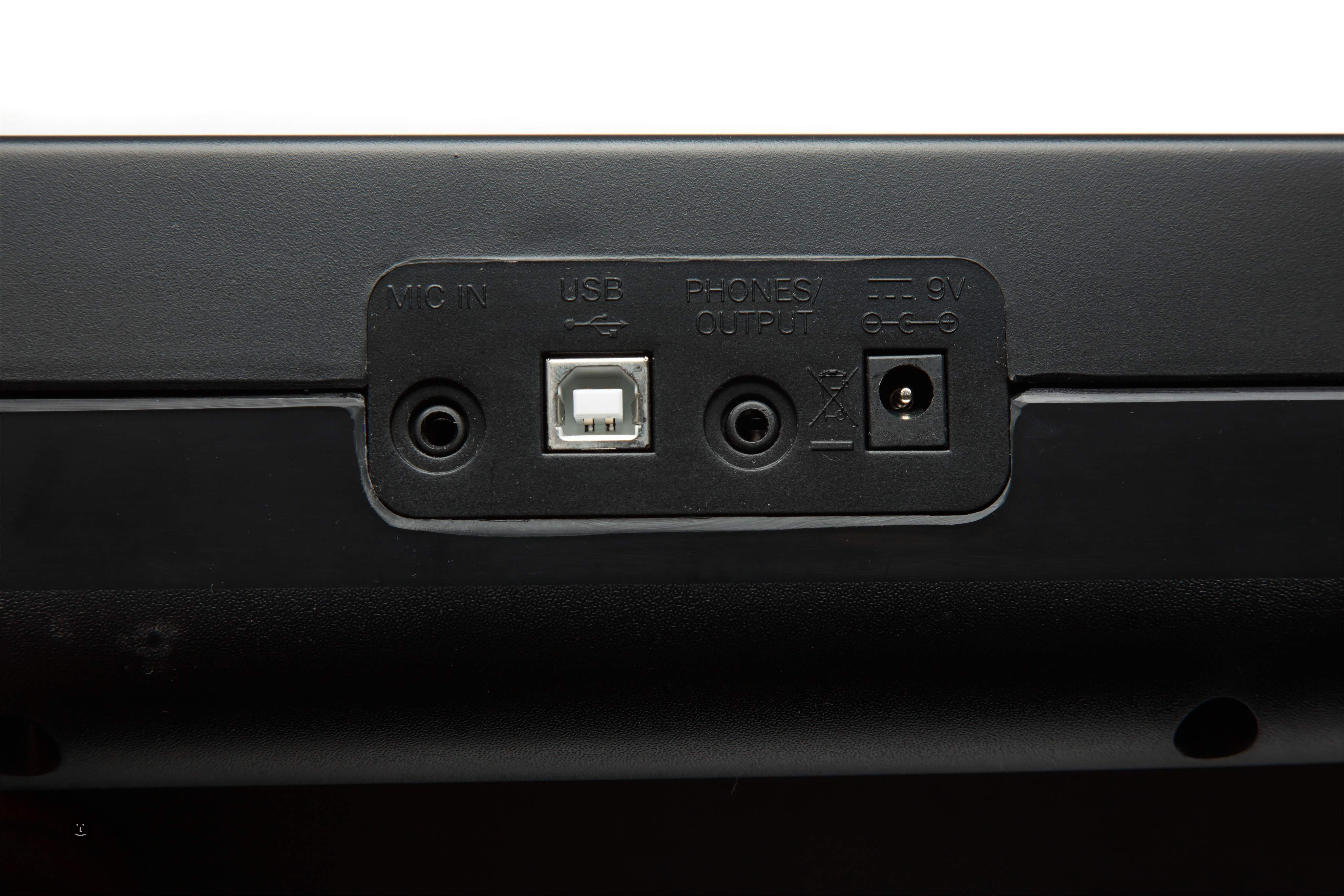 Auf der Rückseite befindet sich ein Ausgang für den Anschluss an ein Keyboard-Combo oder eine andere PA. Wenn Sie der Klavierbegleitung Ihren Gesang hinzufügen möchten, gibt es nichts Einfacheres, als ein Mikrofon anzuschließen und zu singen. Alles, was du brauchst, ist ein Schnurrbart, um wie Freddie Mercury auszusehen. Wenn du also Lust hast, wie Sir Elton John auszusehen, setz deine typische runde Brille auf und spiel mit! Wenn Sie überempfindliche Nachbarn haben, werden Sie den Kopfhörerausgang zu schätzen wissen, so dass Sie bis in die frühen Morgenstunden spielen können.
