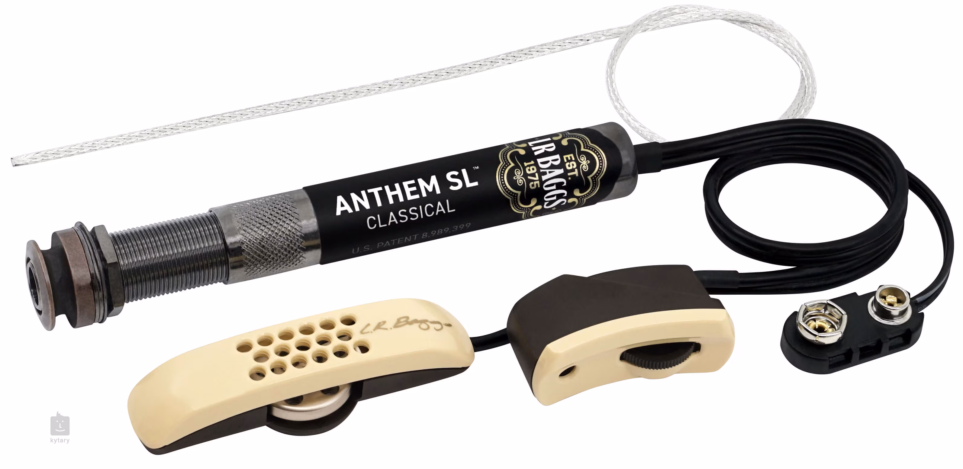 LR BAGGS Anthem Aktiv-Elektronik für klassische Gitarre bietet alles, was Sie brauchen, in einem Paket. Das Herzstück des Systems ist die revolutionäre TRU-MIC-Mikrofon-Sensortechnologie, bei der ein körpereigenes Mikrofon (an der Unterseite der Kopfplatte befestigt) ein ähnliches Klangerlebnis wie bei herkömmlichen Studiomikrofonen bietet (absolut klarer Klang mit ausgewogenem Frequenzgang über den gesamten Frequenzbereich). Das Mikrofon ist außerdem sehr resistent gegen Rückkopplungen und nimmt keine Körpergeräusche auf. Es wird innerhalb des Systems durch einen Element-Sub-Zellwandler ergänzt, der die tiefsten Frequenzen aufnimmt.