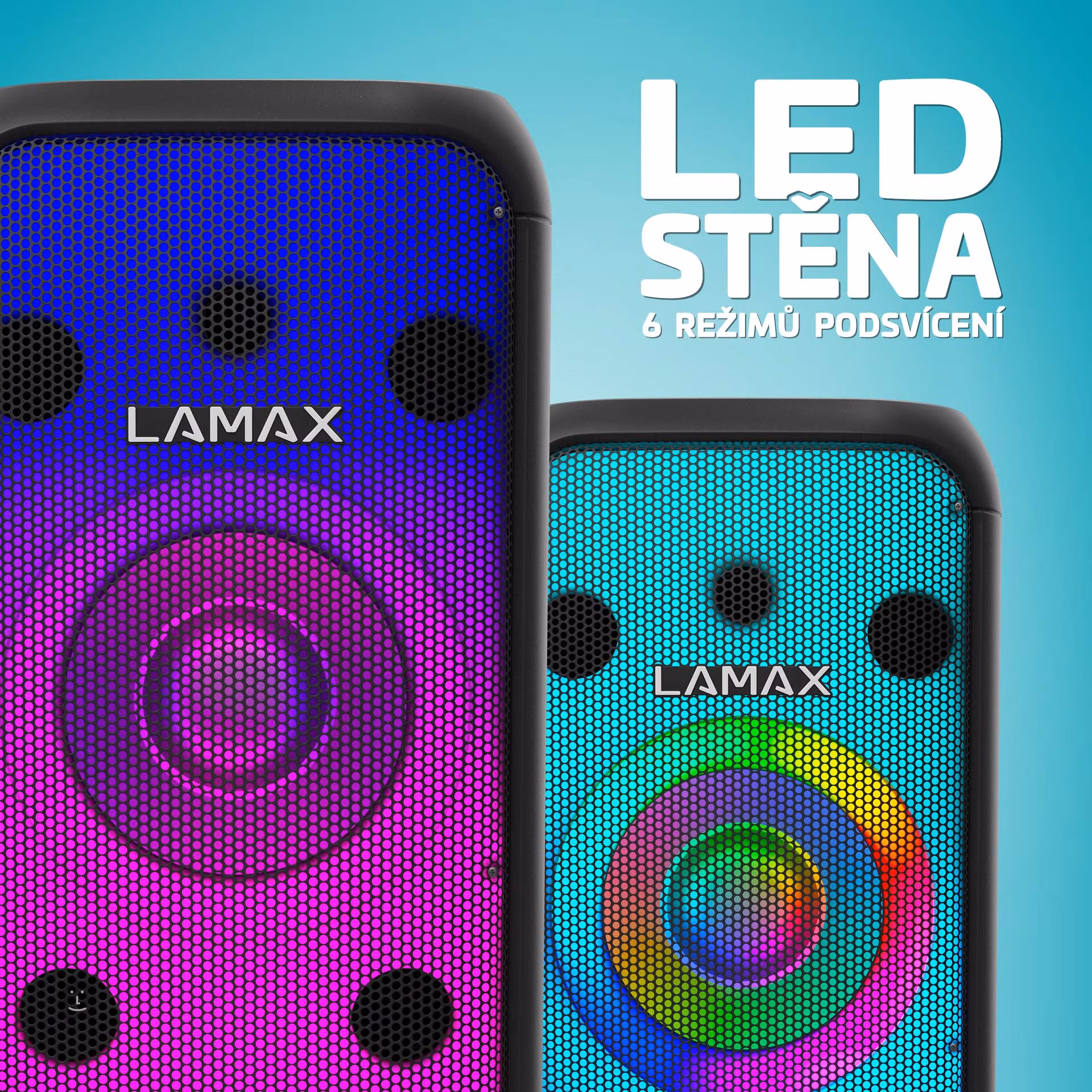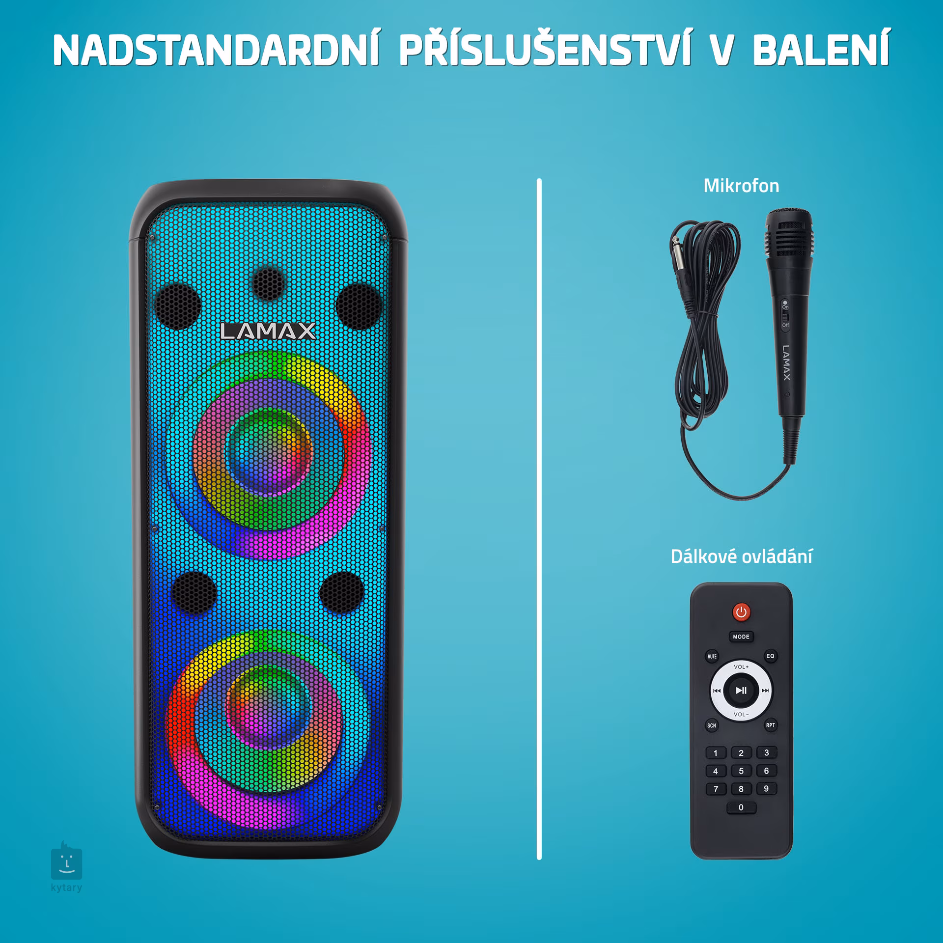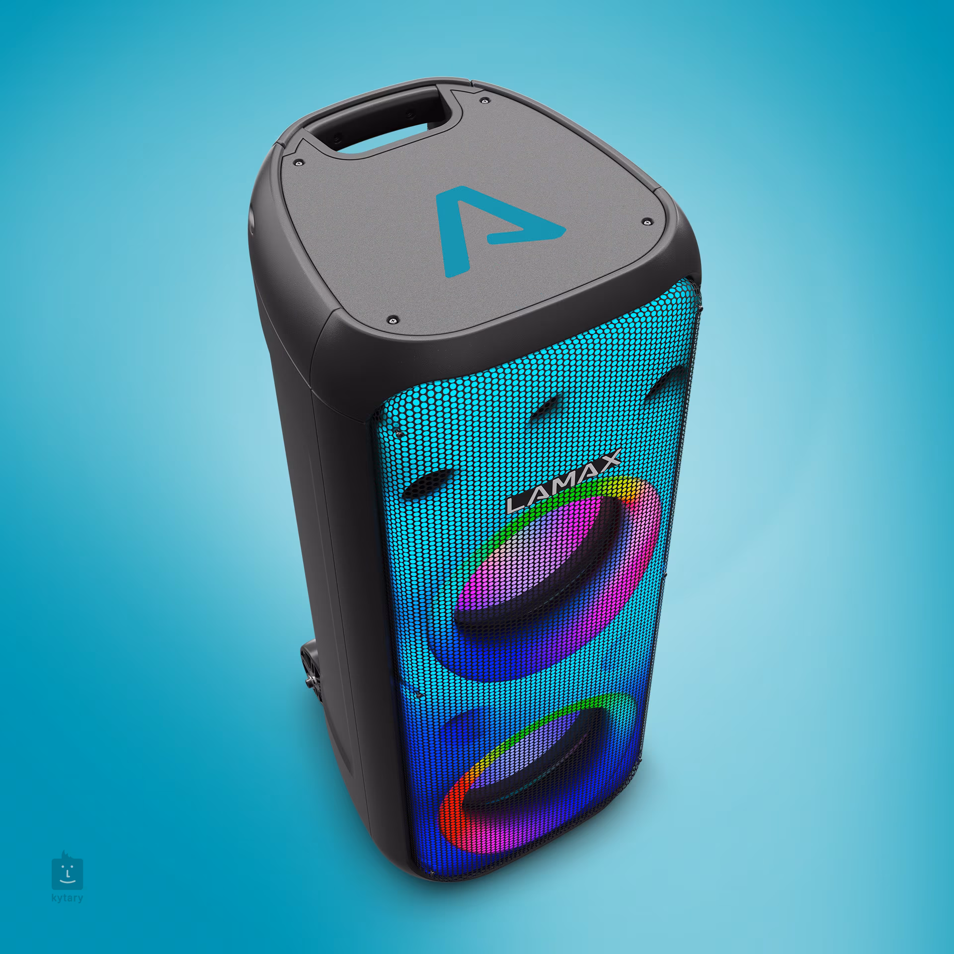 Der Lamax PartyBoomBox700 ist ein Bluetooth-Lautsprecher, der mit einer maximalen Leistung von 700 W für eine richtig wilde Party sorgt – für Sie, Ihre Freunde und Ihre Nachbarn. Er bietet eine LED-Wand mit sechs Hintergrundbeleuchtungsmodi, bis zu 8 Stunden Batterielaufzeit, ausgewogenen Klang mit schönen Bässen dank Lamax BeatBass-Technologie, Bluetooth 5.0 mit einer Reichweite von bis zu 10 Metern, die Möglichkeit, ihn dank BeatShare-Technologie mit einem weiteren Lamax-Lautsprecher zu koppeln, einen eingebauten Equalizer, einen Eingang für Mikrofon und Gitarre, Wiedergabe über SD-Karte, USB und Aux, FM-Radio mit automatischer Sendersuche, Spritzwasserschutz (IP54) und einen Moderationsmodus, der die Musik automatisch stummschaltet, wenn Sie in das Mikrofon sprechen. Im Lieferumfang sind ein kabelgebundenes Mikrofon und eine Fernbedienung enthalten. Die robuste Konstruktion garantiert die Widerstandsfähigkeit des Lautsprechers gegenüber rauen Bedingungen, der Griff und die Gummiräder erleichtern die Handhabung des Lautsprechers.