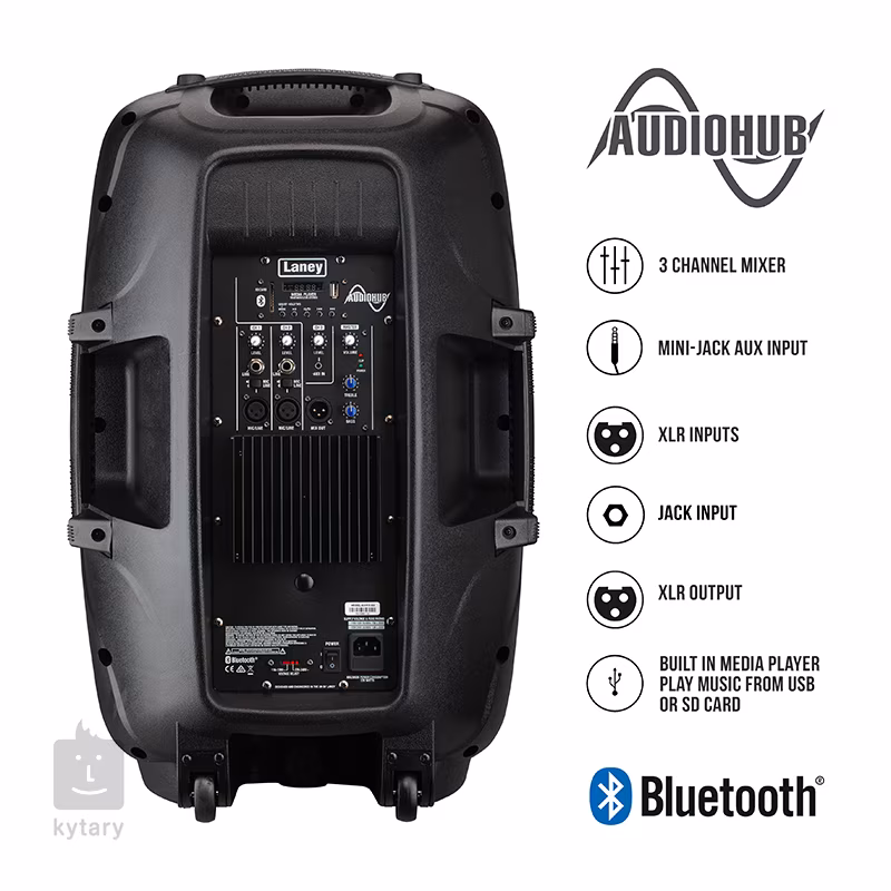 Der Laney Audiohub AH115-G2 ist ein leistungsstarkes und flexibles aktives Dual-Band-Lautsprechersystem mit integriertem Mischpult und digitalem Mediaplayer, das Musik von SD-Speicherkarten und USB-Laufwerken abspielen kann und außerdem über Bluetooth verfügt, um von jedem Bluetooth-Audiogerät zu streamen.