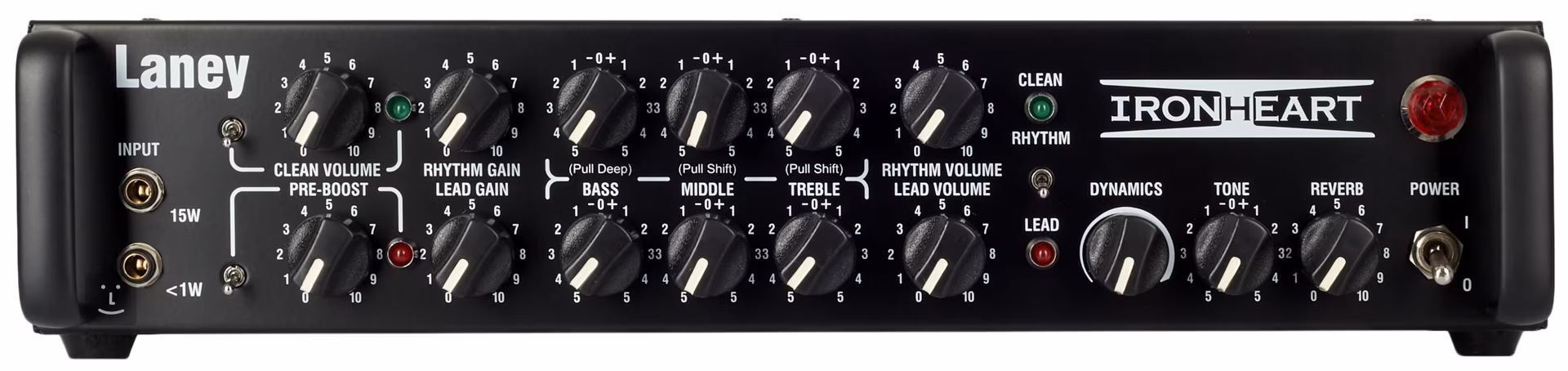 • Regler 3x Voume, 2x Gain, 2x Bass, 2x Middle, 2x Treble, 1x Pre-Boost, 1x Dynamics, 1x Tone, 1x Reverb