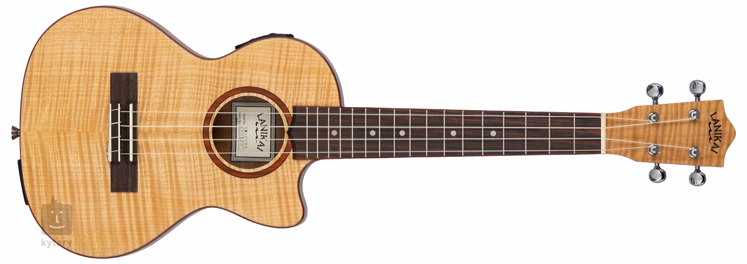 Der elegante, schmale Korpus der elektroakustischen Tenor-Ukulele der Lanikai Flame Maple Series besteht aus laminiertem Ahorn mit einer ausgeprägten Maserung, die dem Instrument ein luxuriöses Aussehen verleiht. Auf den Okoumé-Hals ist ein Feigenholz-Griffbrett mit siebzehn Bünden geleimt. Das angenehme Halsprofil, der breitere Nullbund und der tiefere Korpusausschnitt sorgen für optimalen Spielkomfort.