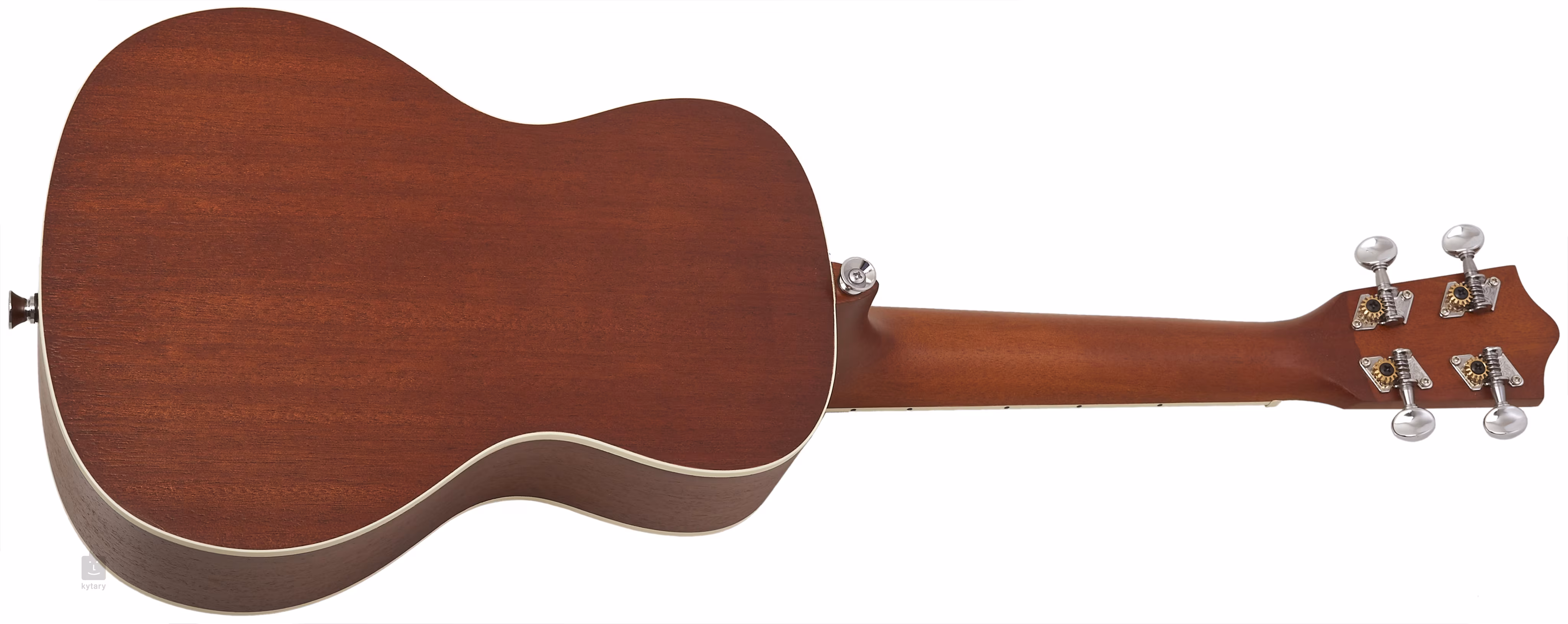 Der Korpus dieser Konzert-Ukulele ist aus überlagerndem Mahagoni gefertigt, was dem Instrument ein traditionelles Aussehen und einen warmen Klang verleiht. Das Griffbrett aus Walnussholz ist mit achtzehn Bünden ausgestattet und hat Positionsmarkierungen zur einfachen Orientierung. Der breitere Hals des Instruments und der Nullbund bieten ein angenehmes Griffbrettgefühl und eine gute Beweglichkeit, während der NuBone XB-Sattel und der Nullbund für ein gutes Saitensustain sorgen. Die Stimmstabilität wird durch die hochwertige, offen verchromte Mechanik gewährleistet. Der optische Eindruck wird durch die Verkleidung (Korpus und Griffbrett) aus ABS-Material unterstrichen. Die Ukulele wird mit einem Gigbag mit einer Polsterstärke von 5 mm geliefert.