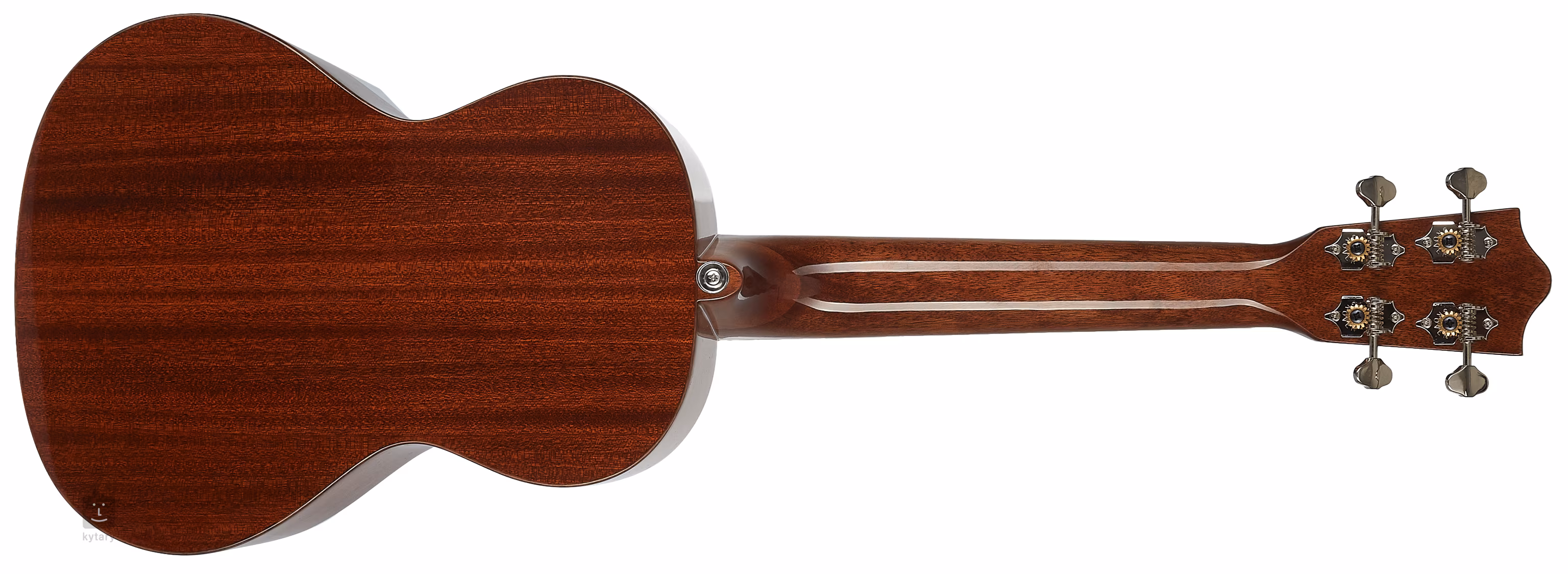 Der massive Korpus dieser Tenor-Ukulele besteht aus Mahagoni, das dem Instrument einen vollen, warmen Ton mit guter Tonprojektion und Sustain verleiht. Das Griffbrett aus Walnussholz ist mit siebzehn Bünden ausgestattet, die mit Positionsmarkierungen versehen sind, um die Orientierung zu erleichtern. Der breitere Hals des Instruments und der Nullbund bieten einen komfortablen Sitz und eine gute Beweglichkeit des Griffbretts, während der NuBone XB-Sattel und der Nullbund für ein gutes Saitensustain sorgen. Die Stimmstabilität wird durch die hochwertige Deluxe Grover Open-Cock-Mechanik mit verchromten Stiften gewährleistet. Der optische Eindruck wird durch die Rosette aus gemasertem Ahorn und das eingelegte Walnuss-Binding verstärkt, die einen schönen Kontrast zur Mahagonifarbe bilden. Die Ukulele wird in einem Softcase mit Schaumstoffpolsterung geliefert.