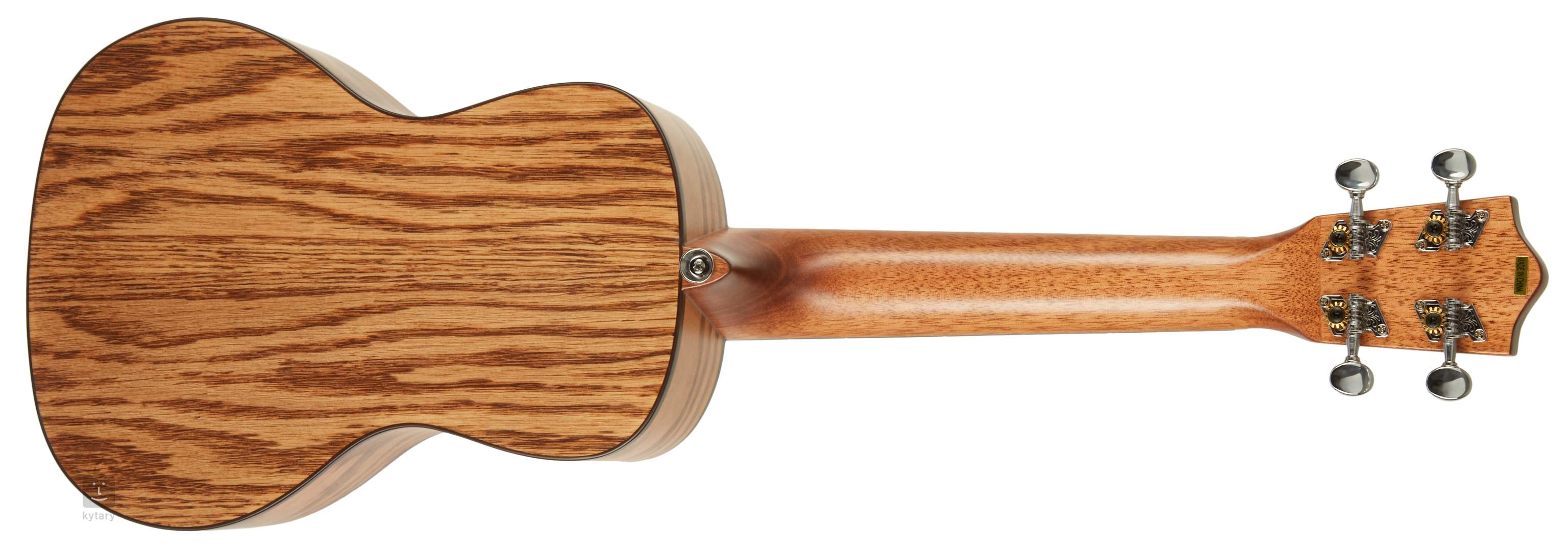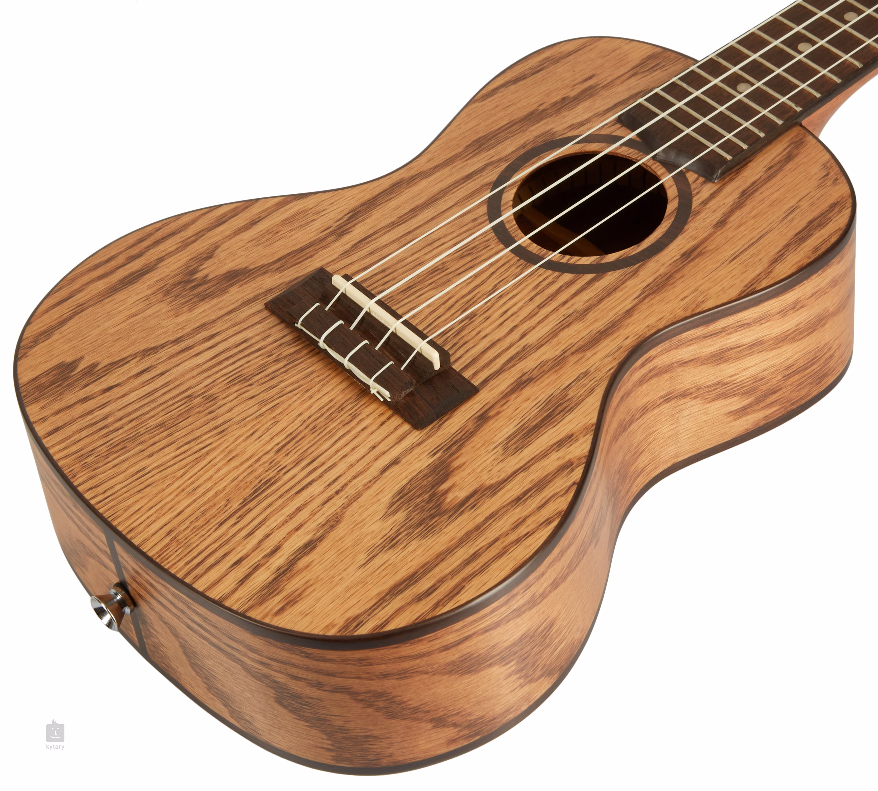 Der Korpus dieser Konzert-Ukulele ist aus überlagerndem Eichenholz gefertigt, dessen Maserung dem Instrument ein ganz exklusives Aussehen verleiht. Das Griffbrett aus Walnussholz ist mit achtzehn Bünden ausgestattet, die Orientierung wird durch Positionsmarkierungen erleichtert. Der breitere Hals des Instruments und der Nullbund bieten komfortablen Griff und Bewegung auf dem Griffbrett, während der Nullbund und der NuBone XB-Sattel den Saiten ein gutes Sustain verleihen. Die Stimmstabilität wird durch die hochwertige, offen verchromte Mechanik gewährleistet. Die Ukulele wird mit einem Gigbag mit 10 mm dicker Polsterung geliefert.