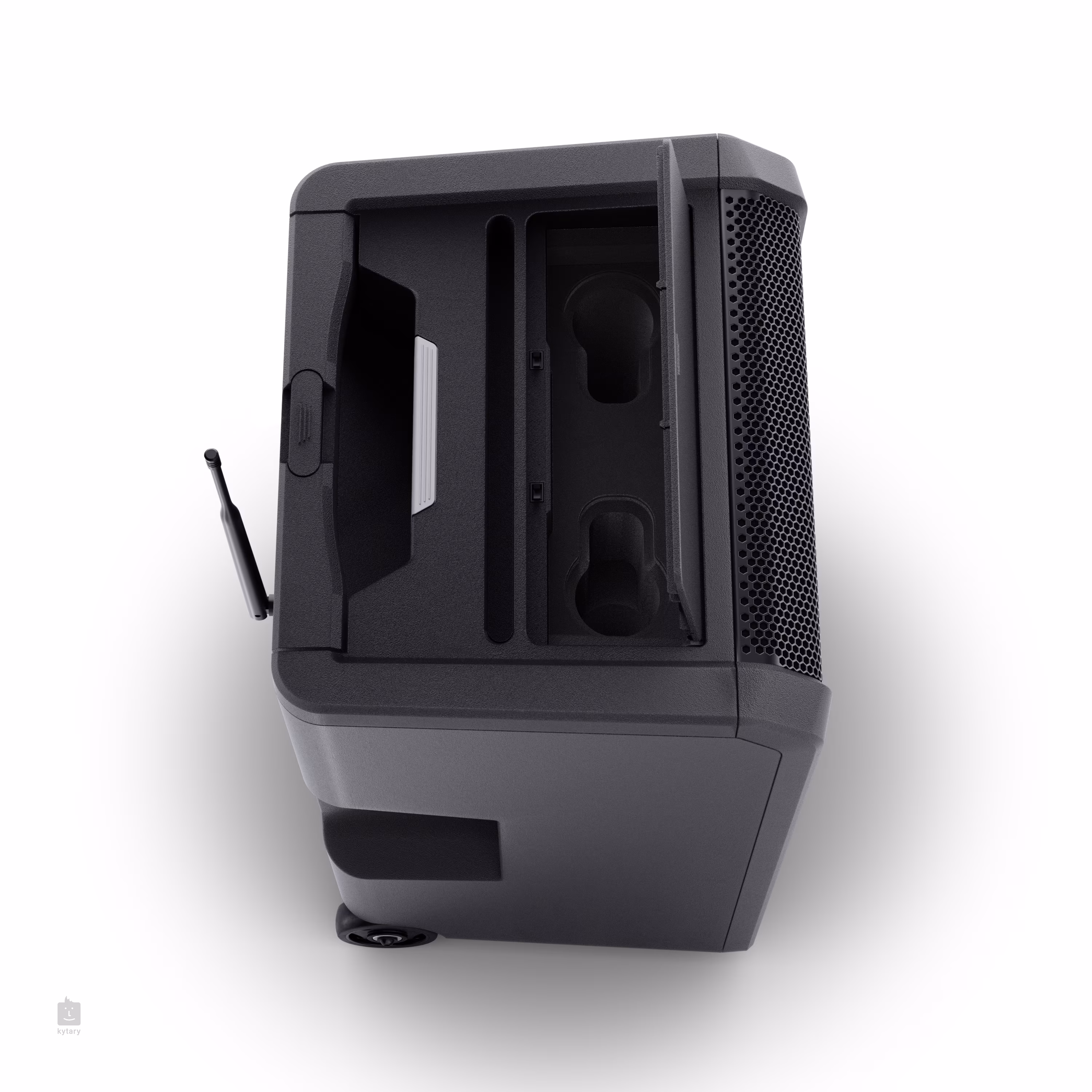 Leicht zu transportieren Wenn Sie häufig mit Ihrem ANNY 10 unterwegs sind, werden Sie die integrierten Räder und den Teleskopgriff zu schätzen wissen, mit denen Sie den ANNY wie einen normalen Reisekoffer behandeln können. Die robuste Konstruktion, die beiden Griffe und die praktische Schräge sorgen dafür, dass der ANNY 10 nicht nur äußerst strapazierfähig ist, sondern sich auch für den Einsatz auf dem Boden oder auf einem Lautsprecherständer eignet.