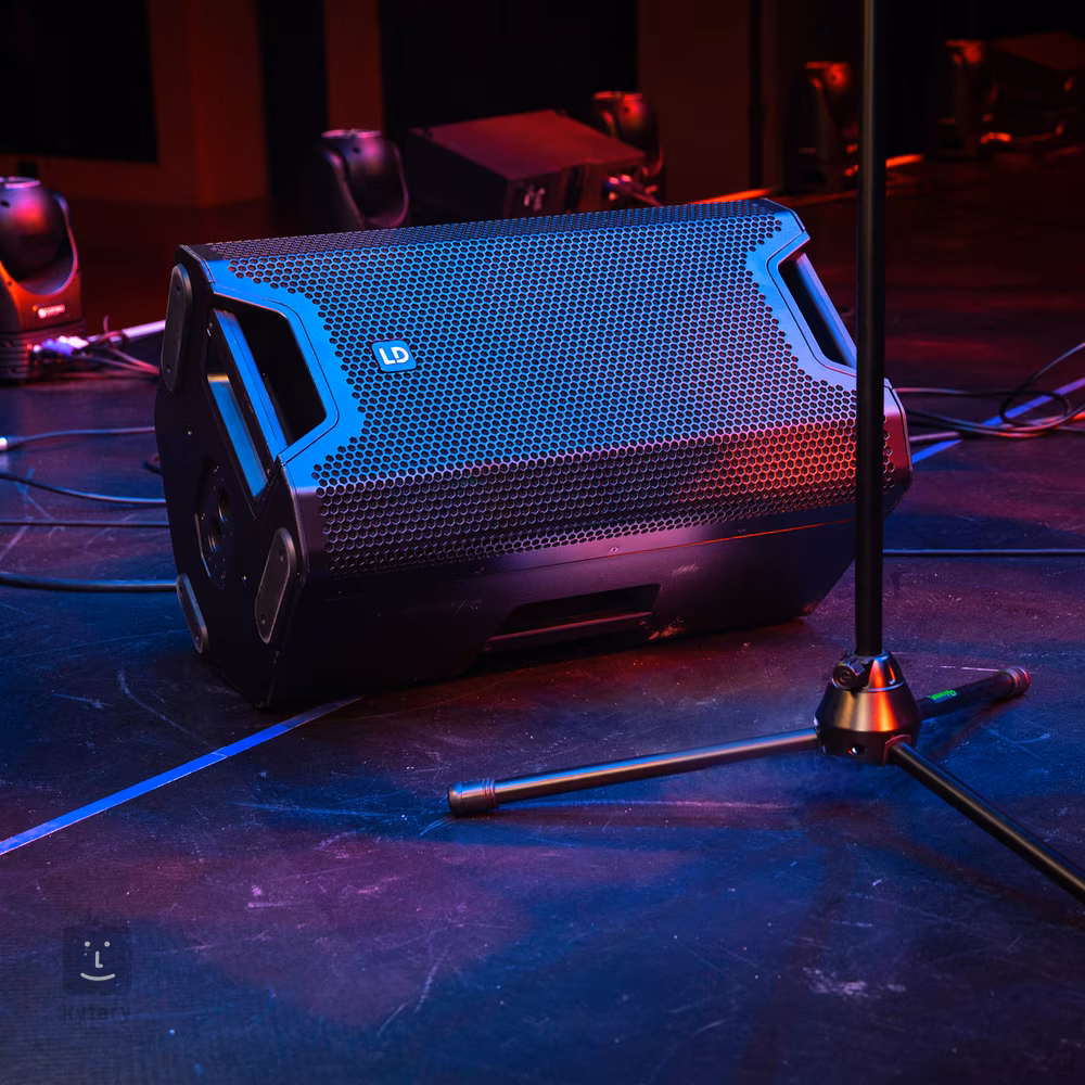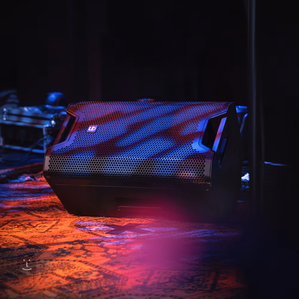 Der Lautsprecher kann in einem Standard-Lautsprecherständer (36 mm) montiert werden. An der Unterseite befinden sich zwei Öffnungen, eine mit 0° und eine mit 5° Neigung für eine optimale Einstellung. Sie können auch das abgeschrägte Design nutzen, um einen aktiven Monitor für Live-Auftritte zu erhalten. Bequemes und einfaches Tragen ist durch die vierfachen Aluminiumgriffe garantiert.