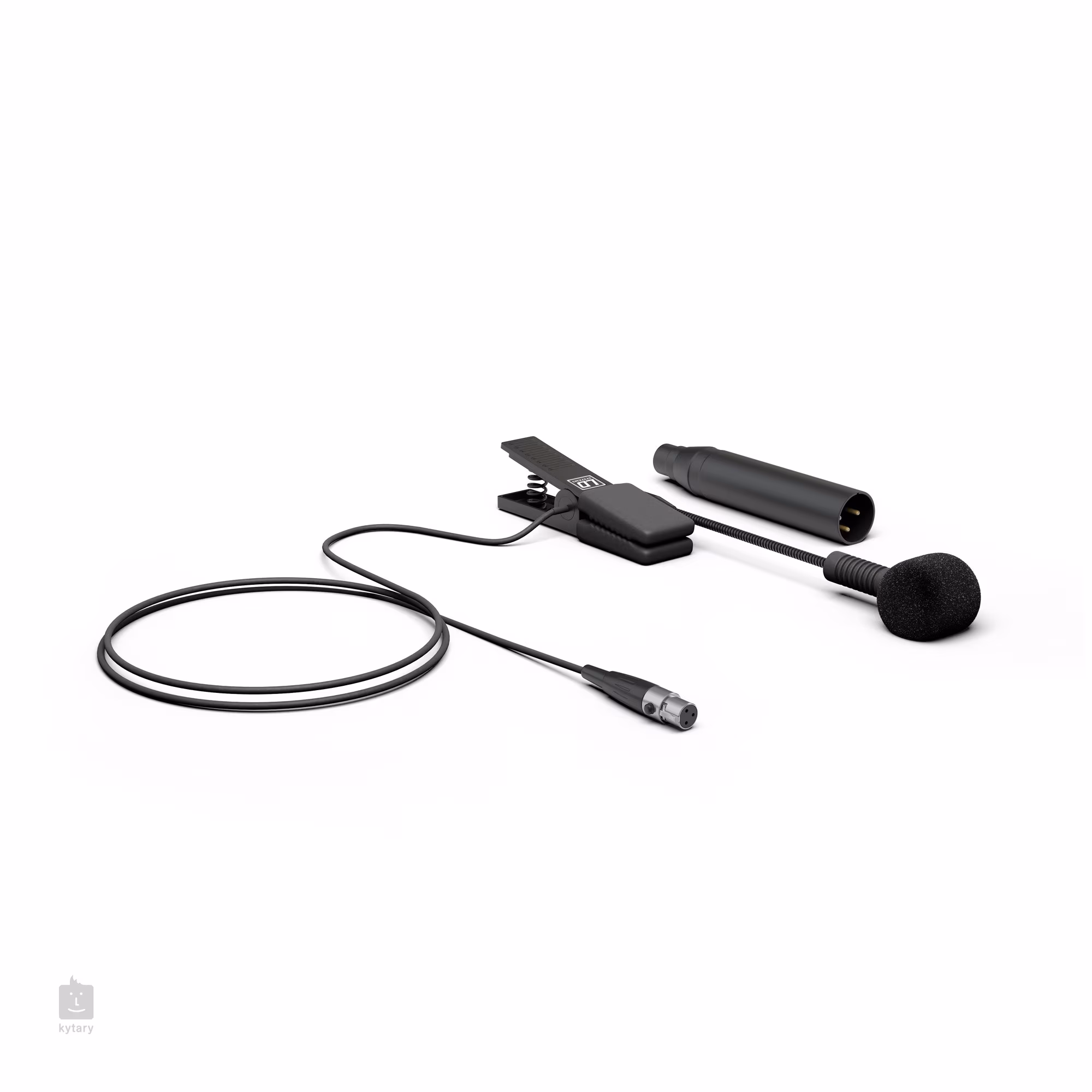 Zum Set gehört ein Mikrofon für Blasinstrumente mit Nierencharakteristik und einem Bereich von 50 Hz - 18 kHz. Das Mikrofon wird über eine 5-V-Phantomspeisung versorgt und verfügt über einen Mini-XLR-Anschluss zum Anschluss an den Sender. Ein Schwanenhals (70 mm) und ein Phantomspeiseadapter sind im Lieferumfang enthalten.