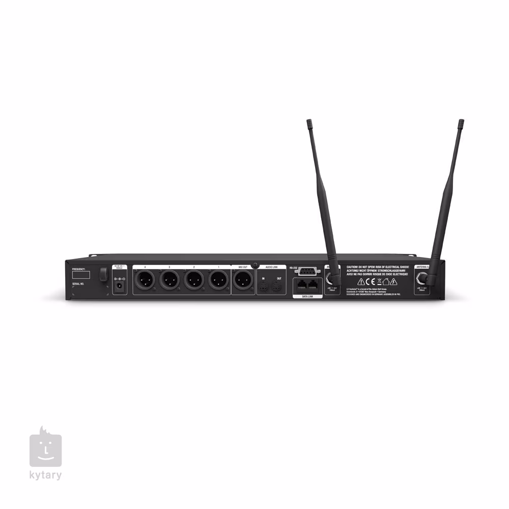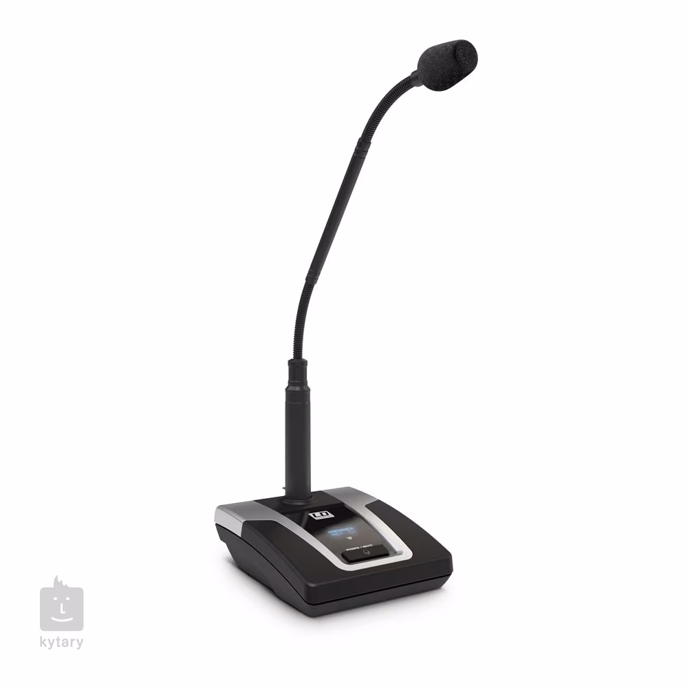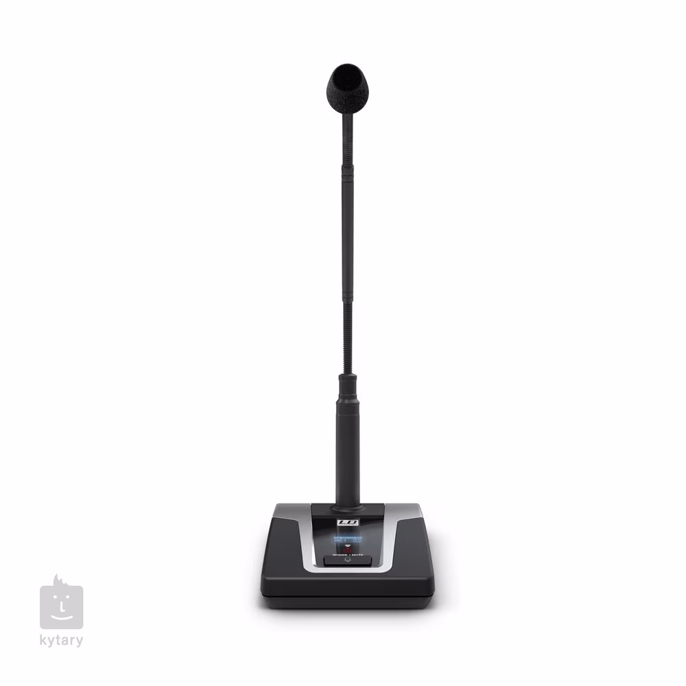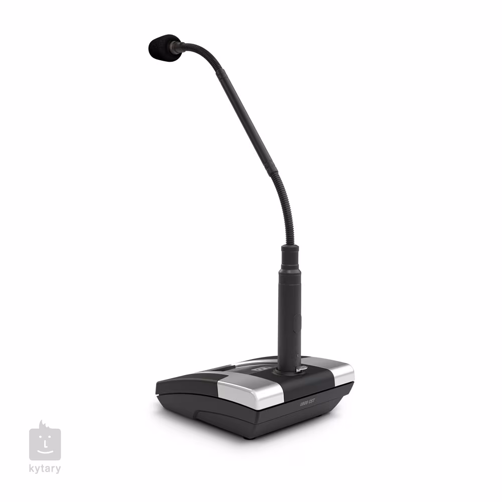 Drahtloses Konferenzsystem mit vier Kondensatormikrofonen mit Hypernierencharakteristik (Schwanenhals) und vier Mikrofonstativen mit XLR-Mikrofoneingängen und 28 V Phantomspeisung. Das System arbeitet im UHF-Bereich mit True Diversity und verfügt über insgesamt 60 Kanäle (6 Gruppen à 10 Kanäle), Gain-, Low Cut-, Power/Mute-Regler, OLED-Display und eine RS-232-Schnittstelle zusätzlich zu XLR-Ausgängen.