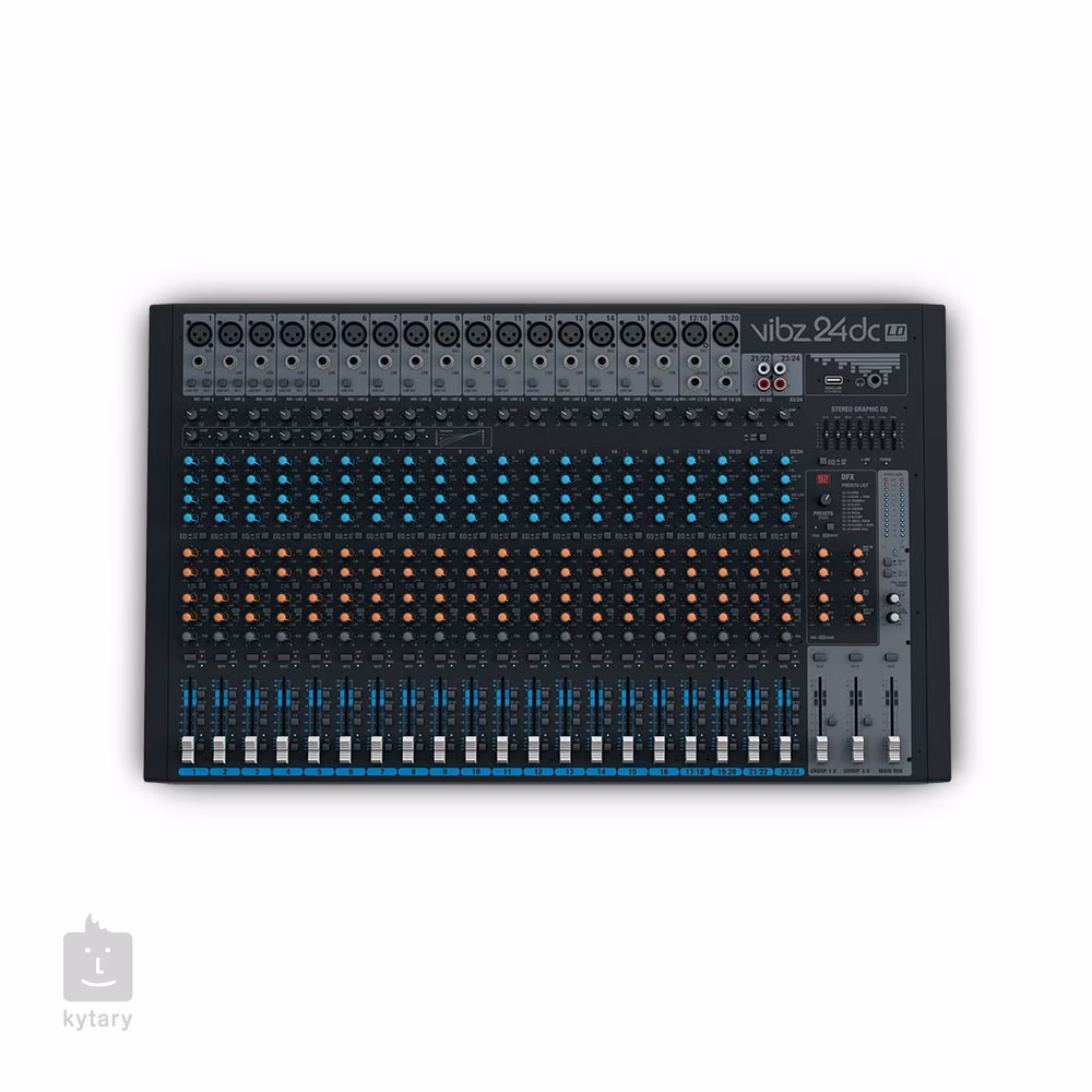 Das VIBZ 24 DC bietet 18 Mikrofoneingänge mit hochwertigen Vorverstärkern, monokompatible Stereo-Line-Eingänge, einen stufenlos regelbaren Kompressor auf den ersten acht Kanälen, acht Insert-Eingänge, vier Subgruppen und 24 Digitaleffekte. Das macht es zu einer sehr flexiblen Konsole, die sowohl für Live-Sound als auch für Aufnahmen geeignet ist.