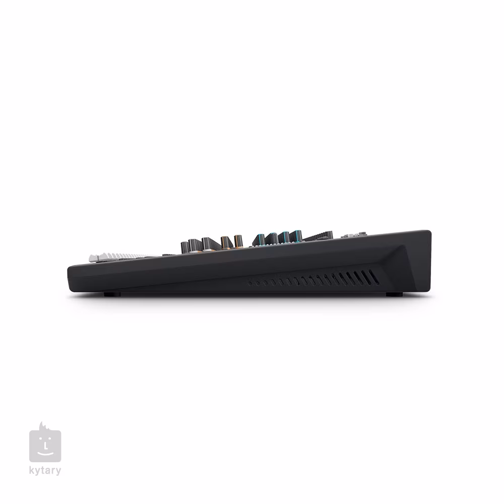 Die Mastersektion bietet professionelle symmetrische XLR-Ausgänge, Master- und Gruppenausgänge mit Pegelanzeige, Kopfhörer- und Ohrhörerausgang mit Lautstärkeregler und einen globalen Siebenband-EQ.