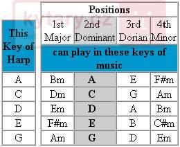 - Diatonisches System - jedes Loch enthält in der Grundspielweise zwei Töne, von denen einer beim Einatmen und der andere beim Ausatmen erklingt