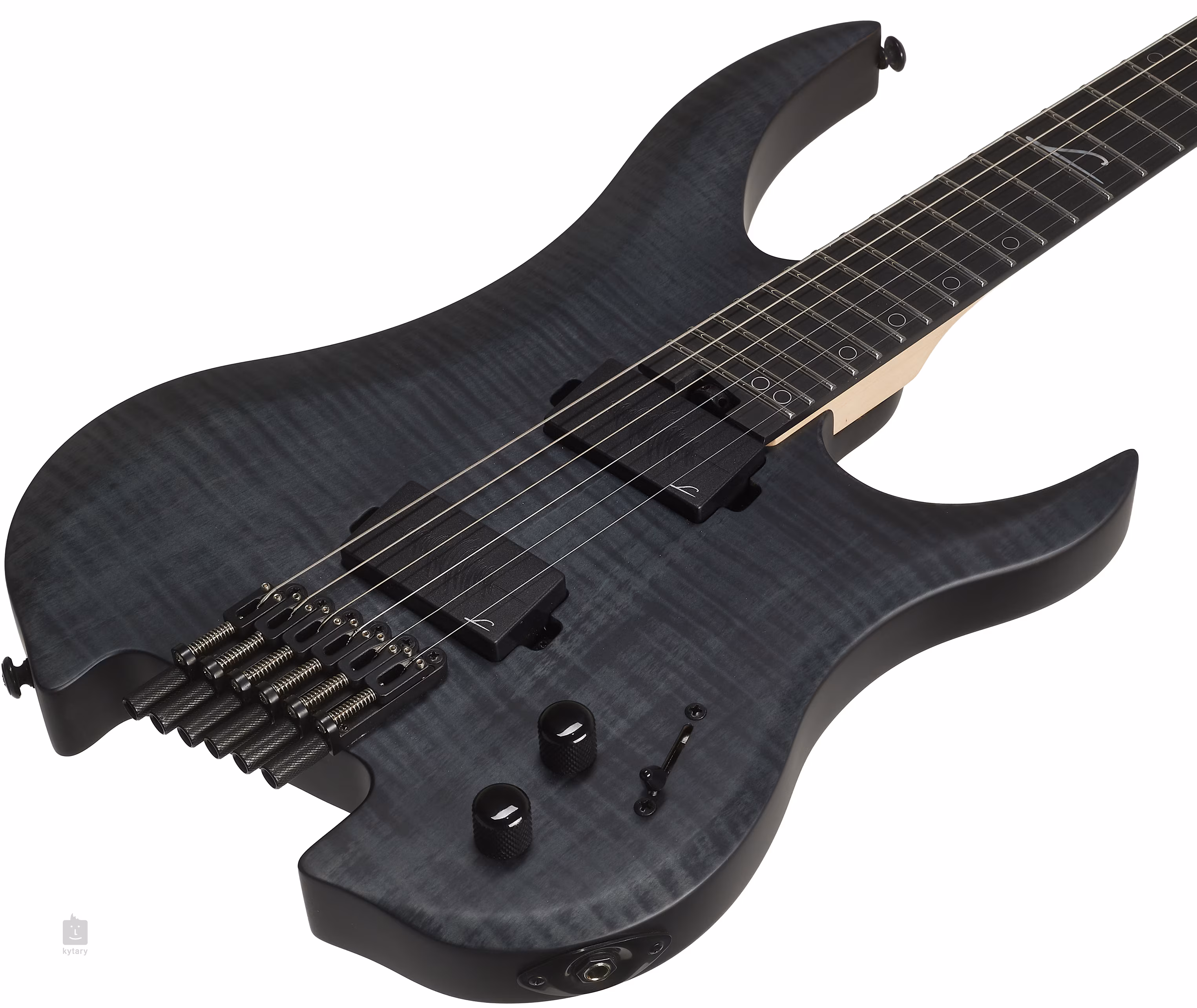 Für die Klangwiedergabe des Instruments sorgen zwei aktive Humbucker vom Typ Legator AfterShock. Die Klangkonturen können Sie mit den Lautstärkereglern, dem Tonregler und dem dreistufigen Pickup-Schalter nach Ihren Wünschen einstellen. Die Saiten sind in Mechaniken befestigt, die speziell für kopflose Gitarren entwickelt wurden.