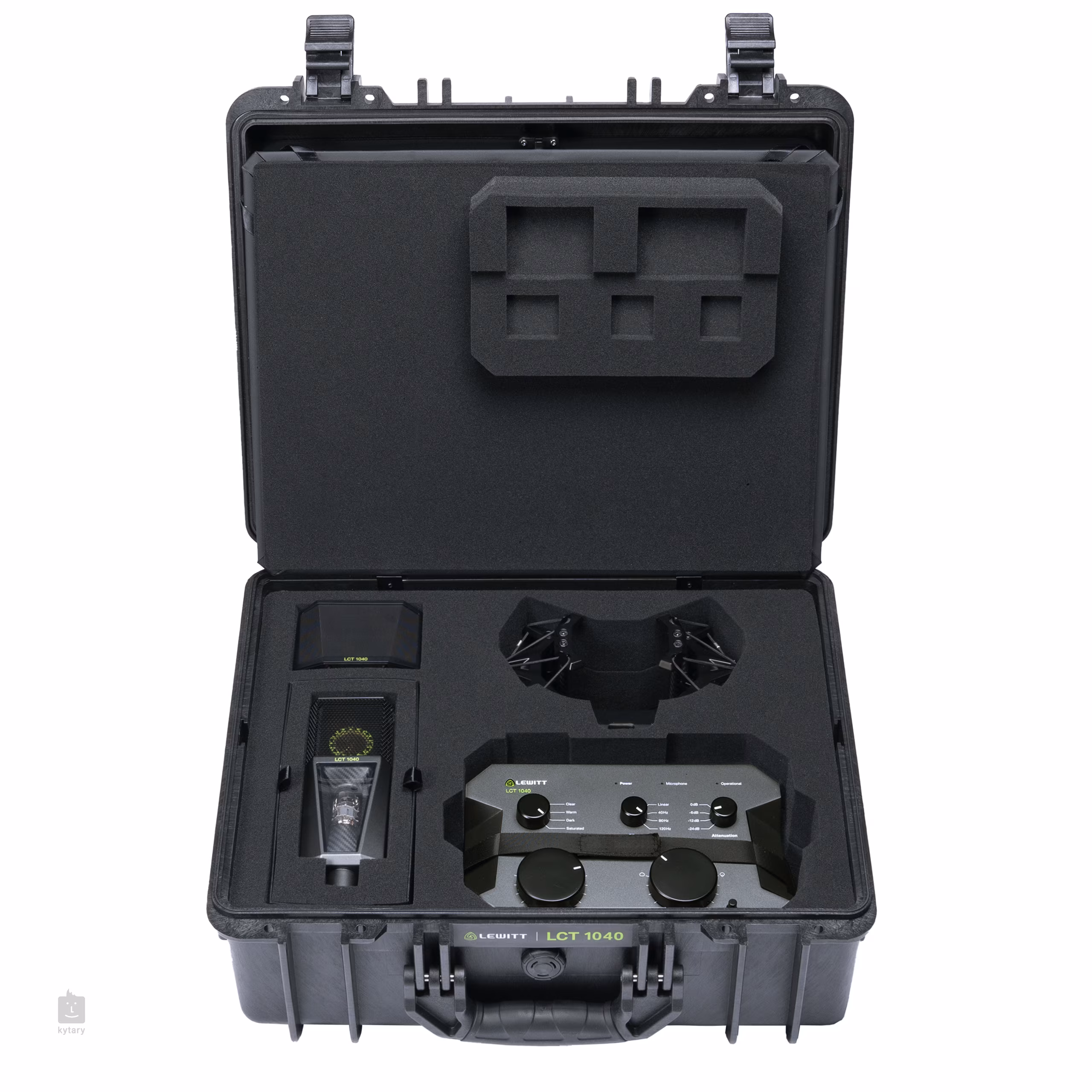 Im Lieferumfang enthalten sind Mikrofon, Netzteil, Anschlusskabel, eine hochwertige, gepolsterte Halterung mit Schnellspannsystem und komfortabler Neigungsverstellung, ein spezieller magnetischer Poppfilter und ein extra robuster Transportkoffer, der das gesamte System unterwegs zuverlässig schützt.