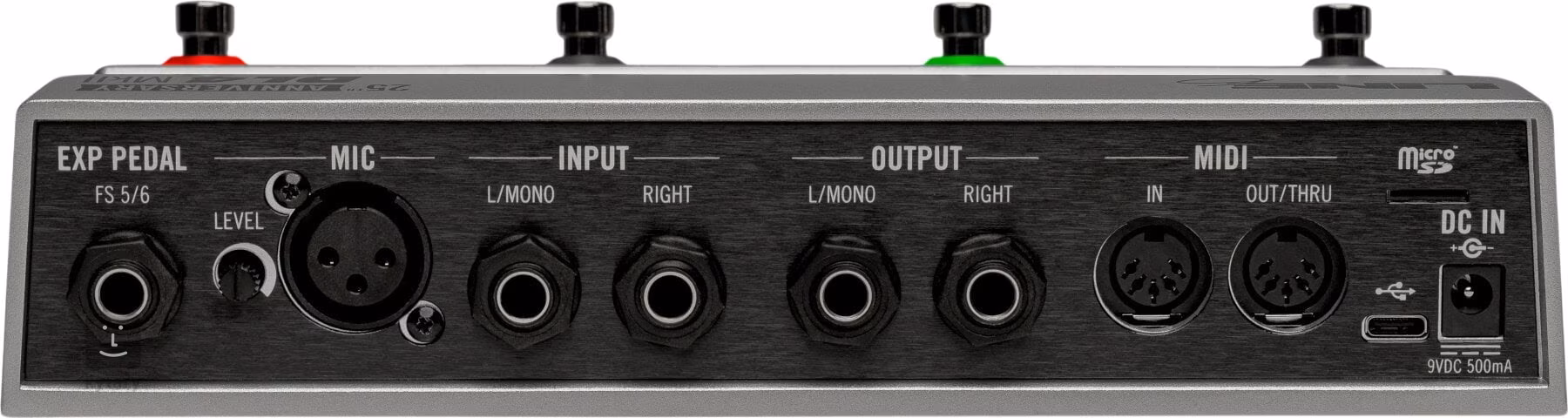 Das Effektpedal verfügt auch über einen Looper mit Mono- und Stereoanschluss, der vor oder nach den Effekten platziert werden kann. Er verfügt über eine Kapazität von 240 Sekunden Aufnahmezeit, die mit einer microSD-Karte (nicht im Lieferumfang enthalten) erweitert werden kann, auf der auch Loops gespeichert werden können. Das Design der Box ist dem des DL4 nachempfunden und kann so eingestellt werden, dass es genau wie das ursprüngliche Modell funktioniert. Es ist jedoch kleiner, so dass es nicht so viel Platz auf dem Pedalboard einnimmt. Neben dem 30-Effekt-Schalter gibt es zwei Regler, mit denen die Länge und die Anzahl der Wiederholungen des Delay-Effekts eingestellt werden können, sowie einen Regler für das Verhältnis zwischen trockenem und nassem Signal und zwei spezielle Tweek- und Tweez-Regler, deren Funktionen je nach ausgewähltem Delay-Effekt variieren. Vier Schalter ermöglichen die einfache Steuerung des Loopers und das Umschalten zwischen den Presets.