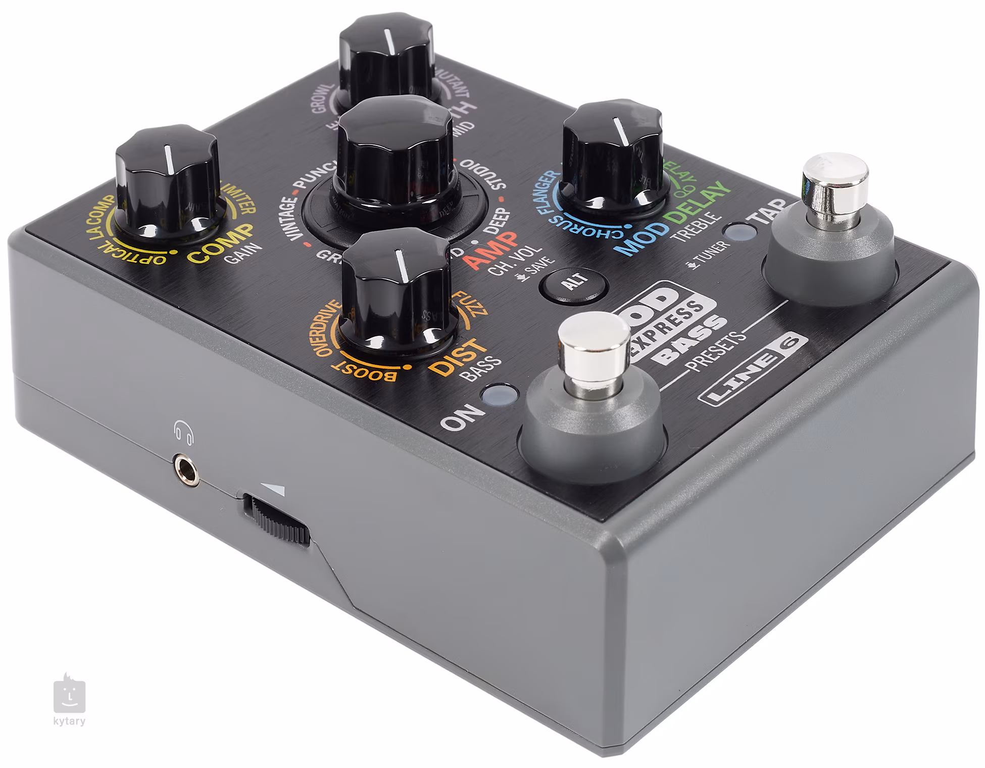 Der LINE6 POD Express Bass ist ein tragbarer Bassverstärkersimulator und Multieffekt, mit dem du deinen Sound fast überall hin mitnehmen kannst. Er bietet sieben Bass-Simulationen (Punch, Modern, Vintage, Studio, Grit, Round, Deep), sieben Lautsprechersimulationen und siebzehn Effekte in den Kategorien Kompressor, Synth, Distortion und Modulation/Delay. Außerdem gibt es einen Looper. Das gesamte Sound-Equipment stammt aus der LINE6 Helix-Serie, dem Flaggschiff der Marke. Alle Effekte und Simulationen sind garantiert von höchstmöglicher Klangqualität.