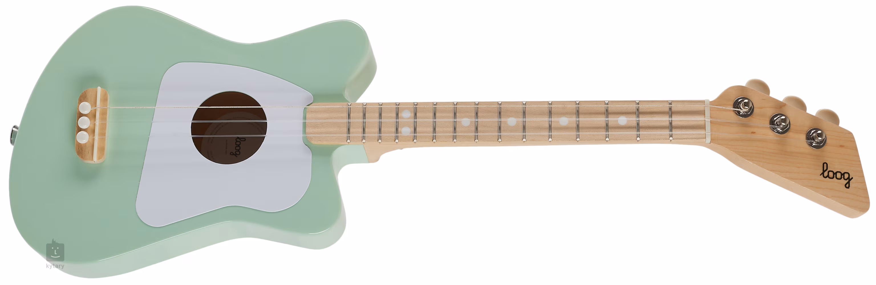 Die Loog Mini Acoustic Green ist eine dreisaitige Akustikgitarre für Kinder, die in ihrer Größe mit einer Ukulele vergleichbar ist. Es ist ein Instrument mit Nylonsaiten und Standard-Gitarrenstimmung (G-H-E), das für Kinder ab drei Jahren geeignet ist. Mit der Loog Mini Acoustic sind die Kinder gut auf den späteren Übergang zu einer größeren sechssaitigen Gitarre vorbereitet.