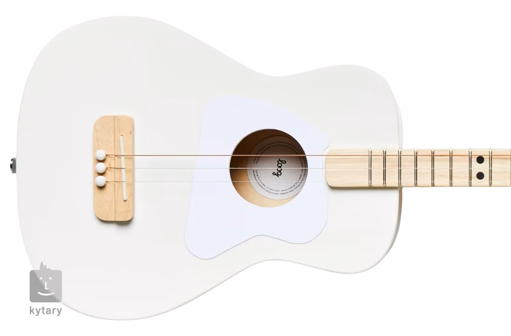 Die Loog Pro Acoustic White ist eine dreisaitige Kinderakustikgitarre mit kleinerem Korpus und kürzerer Mensur, die für Kinder ab sechs Jahren geeignet ist. Es handelt sich um ein Instrument mit Metallsaiten und Standard-Gitarrenstimmung (G-H-E), das Kinder gut auf den späteren Übergang zu einer größeren sechssaitigen Gitarre vorbereitet.