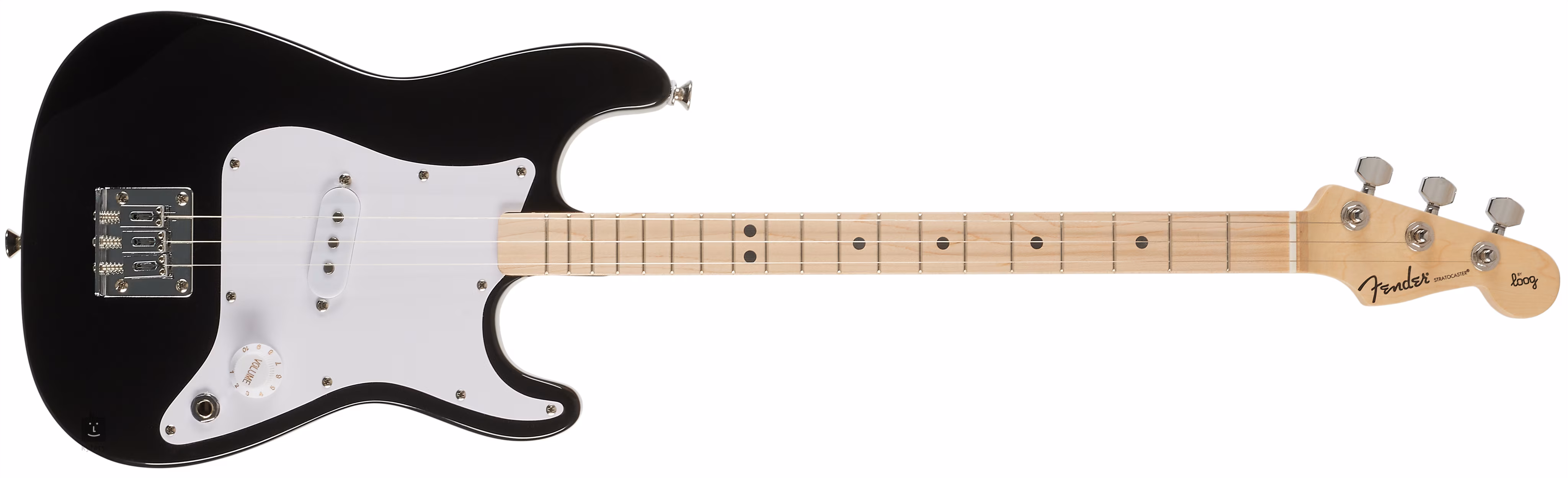 Die Loog x Fender Stratocaster Black ist eine dreisaitige Kinder-E-Gitarre mit kleinerem Korpus und kürzerer Saitenstärke, die für Kinder ab sechs Jahren geeignet ist und Ihre kleinen Rocker auf den späteren Übergang zu "erwachsenen" E-Gitarren und Bässen vorbereiten soll.