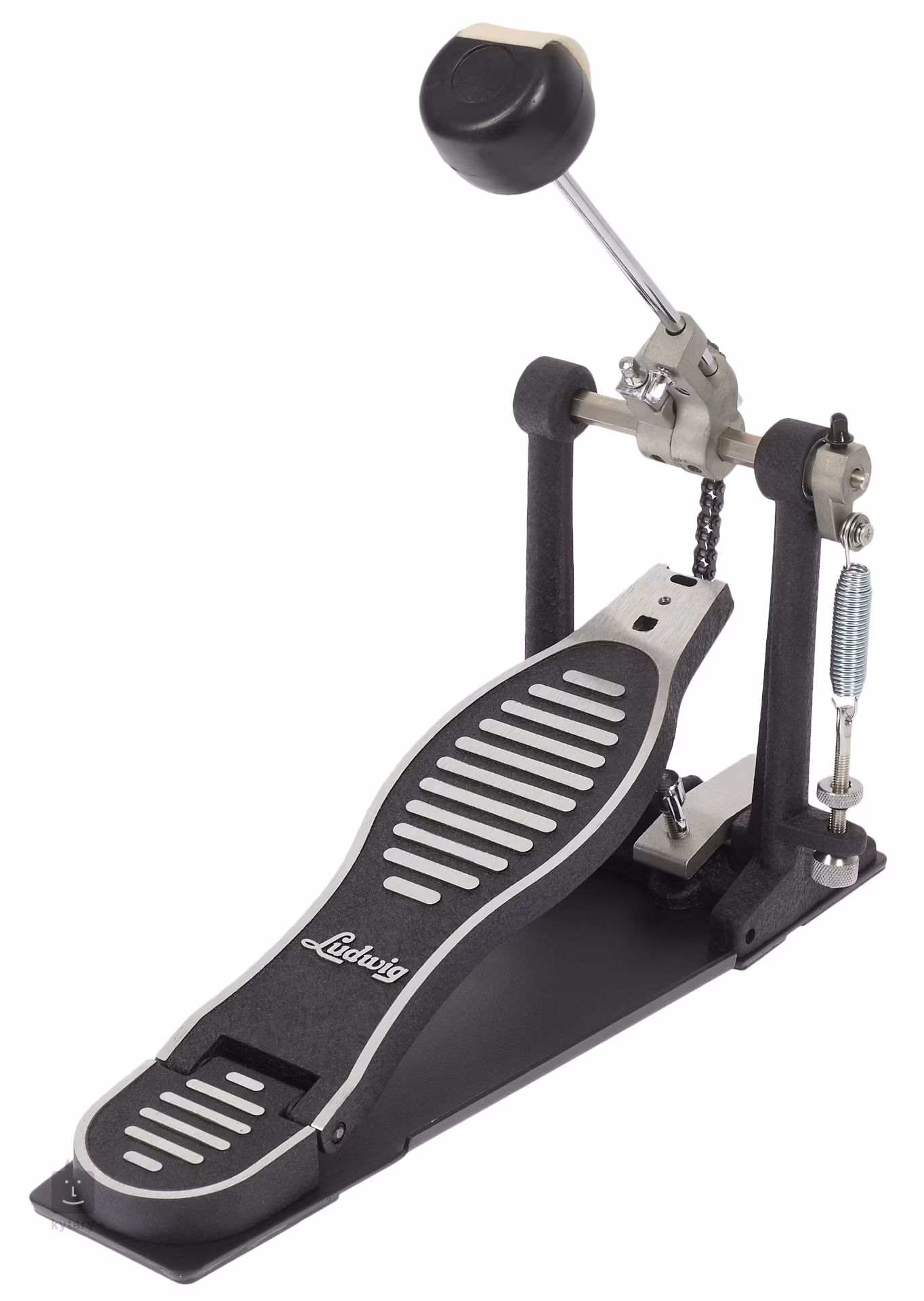 Das Ludwig L415FPR Bass Drum Pedal ist ein einzelnes Pedal mit einer robusten Konstruktion, Kettenantrieb, leichtgängiger Nockenmechanik und beidseitigem Beater.