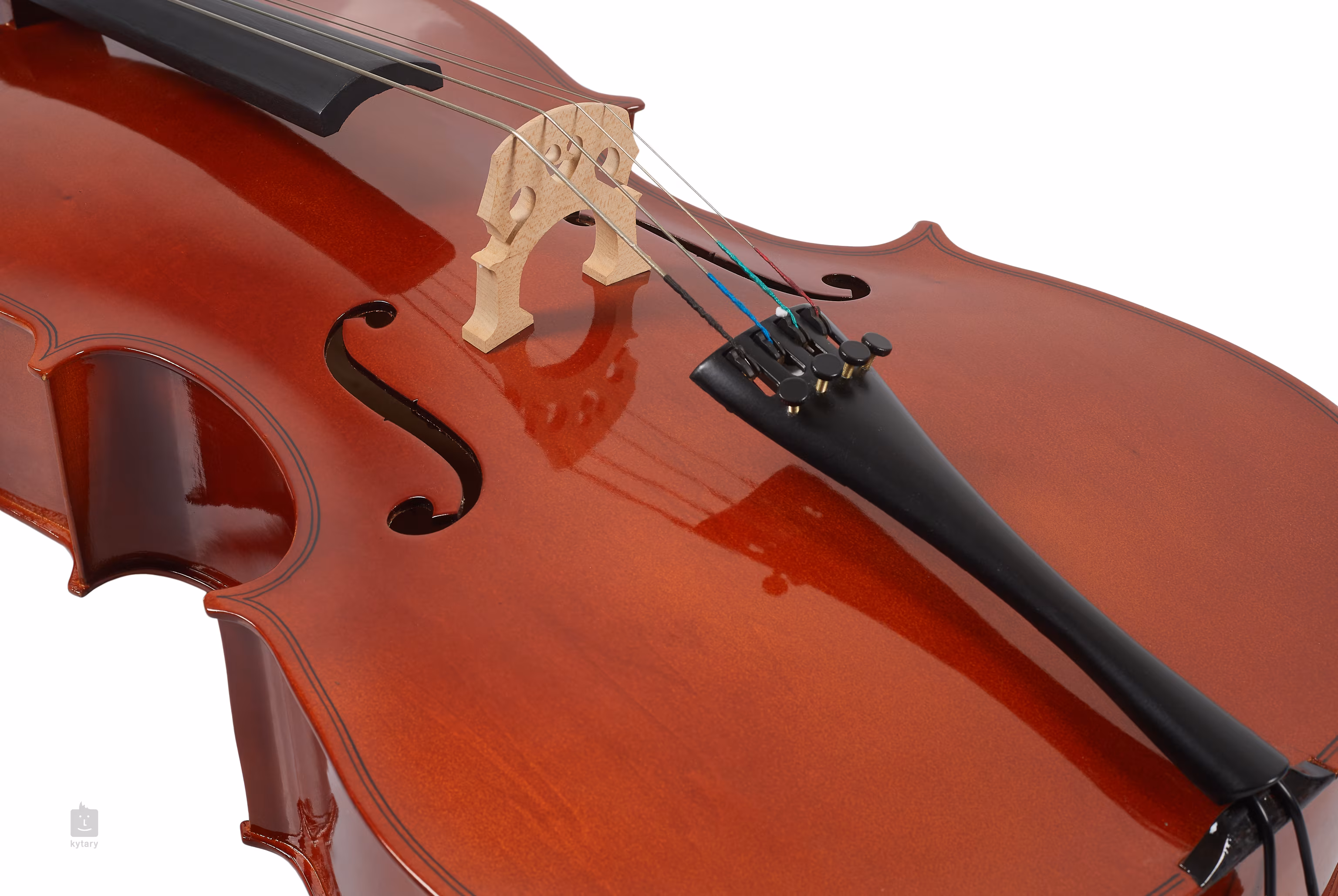 Violoncello 1/4 Größe Luthier Academy - 1/4 ist ein preisgünstiges Instrument, das sich für angehende Cellistinnen und Cellisten eignet. Es verfügt über eine Decke aus massivem Fichtenholz, einen Boden und Zargen aus laminiertem Ahorn, einen Ahornhals und -steg, Ebenholz-Stimmwirbel, ein Ebenholzgriffbrett und einen Saitenhalter aus Carbon-Verbundstoff mit vier Stimmwirbeln. Das Violoncello ist mit einer glänzenden Oberfläche versehen.