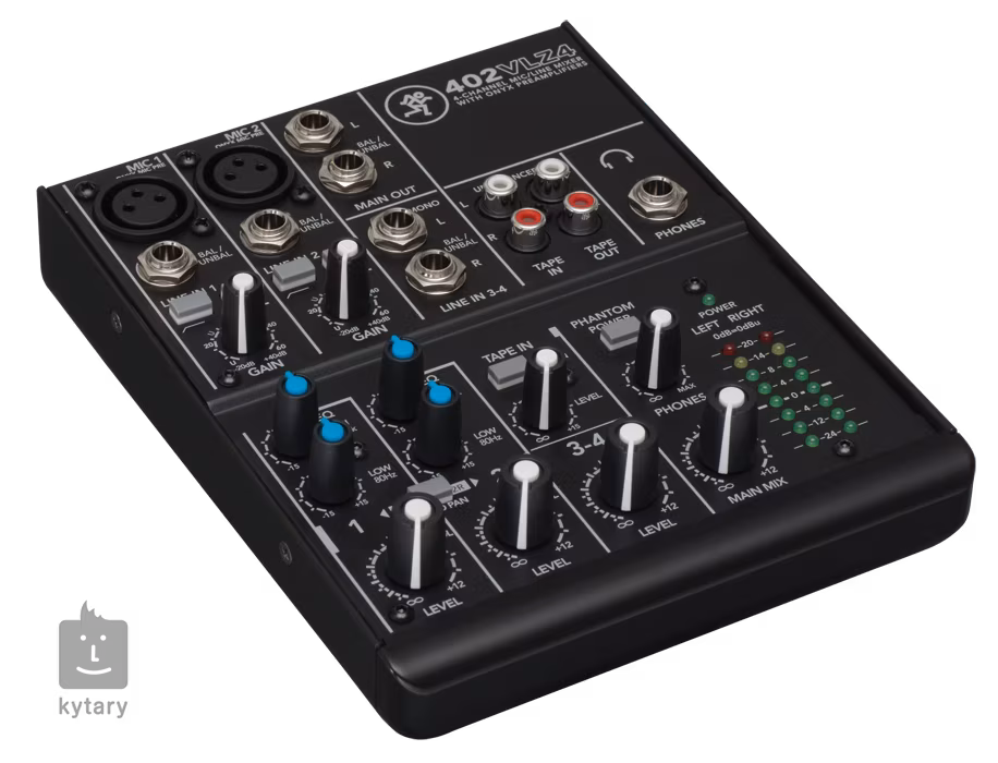Das 402-VLZ4 ist ein kompaktes 4-Kanal-Mischpult mit 4 Line-Eingängen und 2 Mikrofon-Eingängen, wobei die Mikrofon-Eingänge mit den hochwertigen Onyx-Vorverstärkern ausgestattet sind, die Sie vielleicht von den Spitzenmodellen von Mackie kennen. Diese bieten einen Verstärkungsbereich von bis zu 60 dB, so dass Sie einen Dynamikbereich von bis zu 128,5 dB erreichen können. Sie bieten die beste Signalverstärkung bei allen Frequenzen und minimale Verzerrungswerte. Natürlich bietet es auch Phantomspeisung bei Verwendung von Kondensatormikrofonen. Zwei Instrumenteneingänge können auch mit der 402-VLZ3 verwendet werden, so dass Sie keine DI-Boxen benötigen.