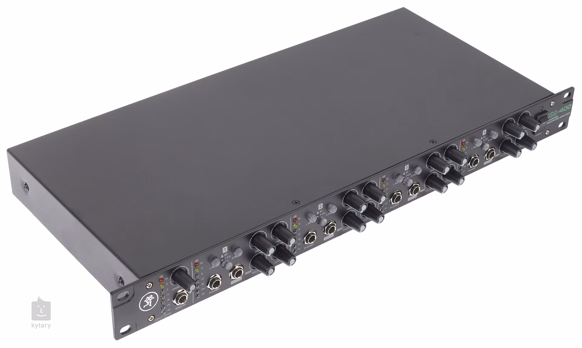 Der Mackie HM-400 Kopfhörerverstärker bietet vier Kanäle mit jeweils drei Kopfhörerausgängen. Insgesamt gibt es 12 Kopfhörerausgänge, genug für ein kleines Orchester zum Beispiel. Jeder Kanal verfügt über eine LED-Anzeige mit sieben Stufen, einen Aux-Eingang mit einstellbarer Lautstärke und einen Mute-Schalter, mit dem Sie den linken oder rechten Kanal ausschalten können.