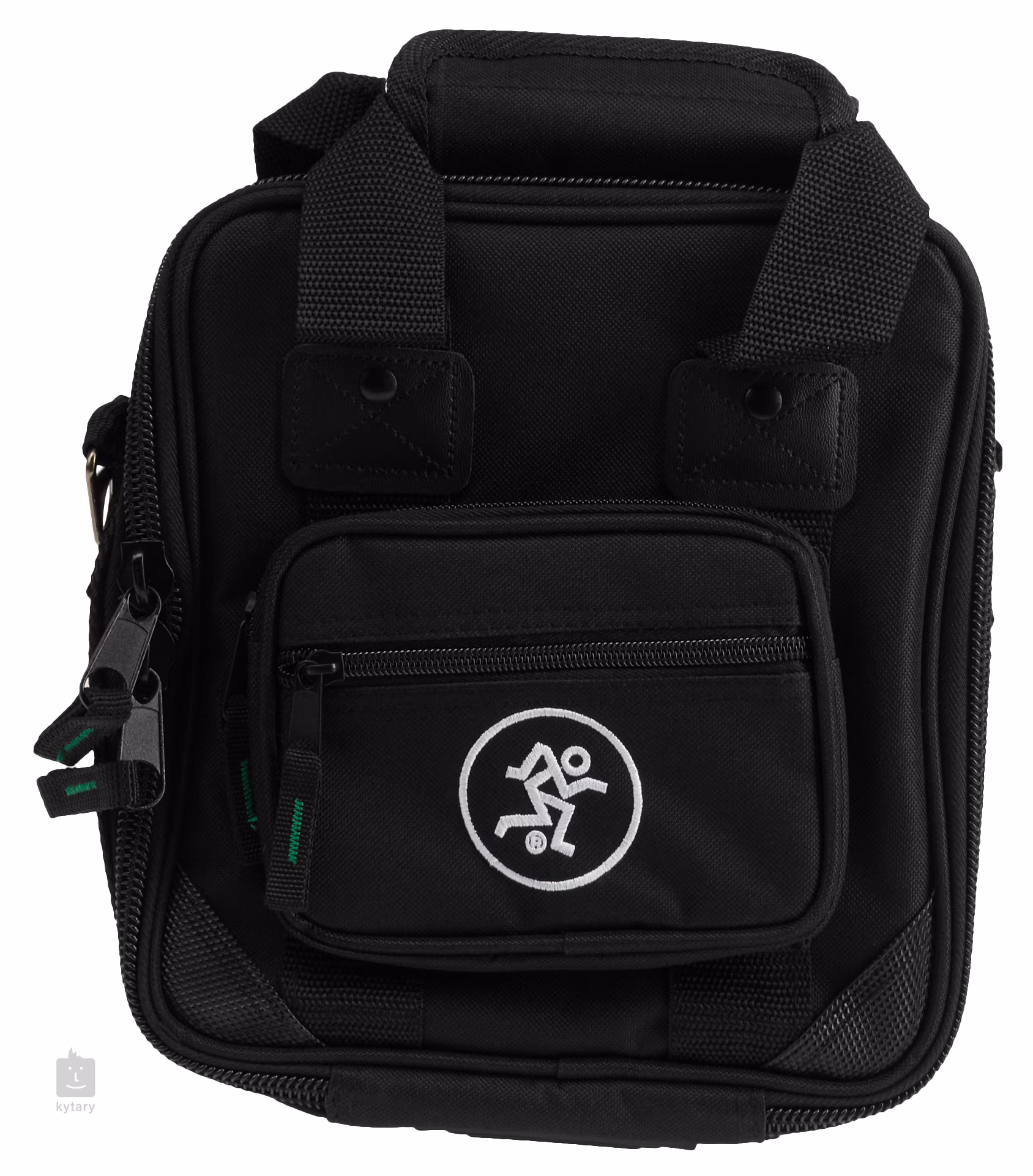 Die Mackie ProFX6v3 Mischpult-Transporttasche ist aus strapazierfähigem Nylon gefertigt und mit Schaumstoff gepolstert, um maximale Sicherheit zu gewährleisten. Auf der Vorderseite befinden sich zwei Taschen für kleine Accessoires, und ein Paar Griffe und ein gepolsterter Schultergurt sorgen für bequemen Transport.