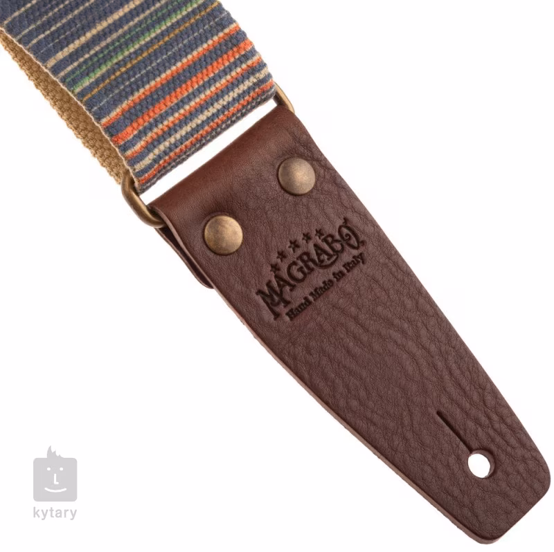 Die italienische Marke Magrabó ist bekannt für ihre handgefertigten Armbänder, die präzise Handwerkskunst, elegantes Design und einen hohen Tragekomfort vereinen. Dieses Modell ist aus hochwertiger Baumwolle gefertigt und mit Lederenden zur Befestigung versehen. Es besteht aus den feinsten Materialien, die ihm Strapazierfähigkeit und Langlebigkeit verleihen. Mit der Metallschnalle mit Messingfinish lässt sich der Gurt von 88 bis 150 cm verstellen. Ideal für elektrische, akustische und Bassgitarre.